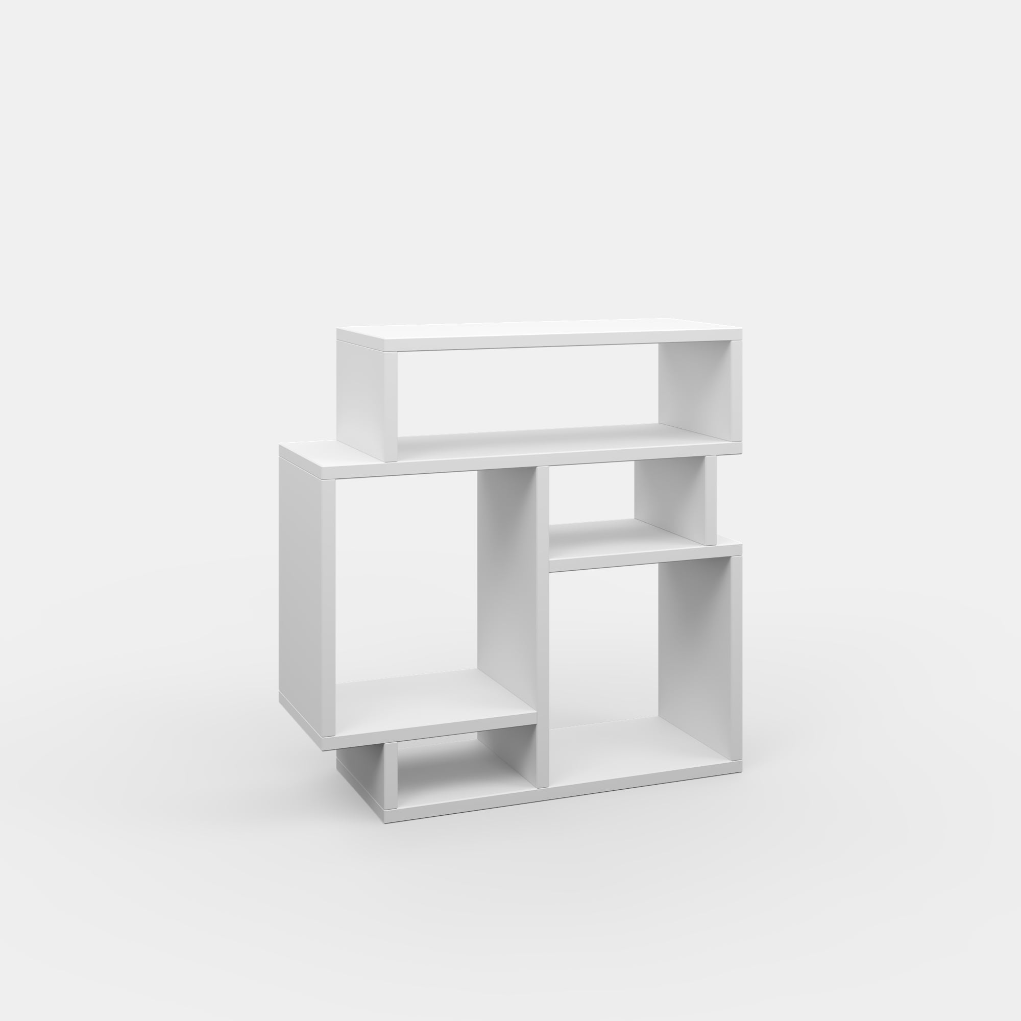 This fresh and fun side table bookcase will add a touch of modern style to any room. Retro asymmetrical design is finished on all sides to be reversible and flippable. Perfect for a living room, dining, room, bedroom, or anywhere you need great looking extra storage. Manufactured from melamine coated engineered wood for strength and durability. Each shelf can hold up to 20 lbs. Ada Home Decor Furniture White 2 Tier Schultz Modern Side Table can be placed on either side of your sofa to store remote control, snacks and your drinks while watching TV.