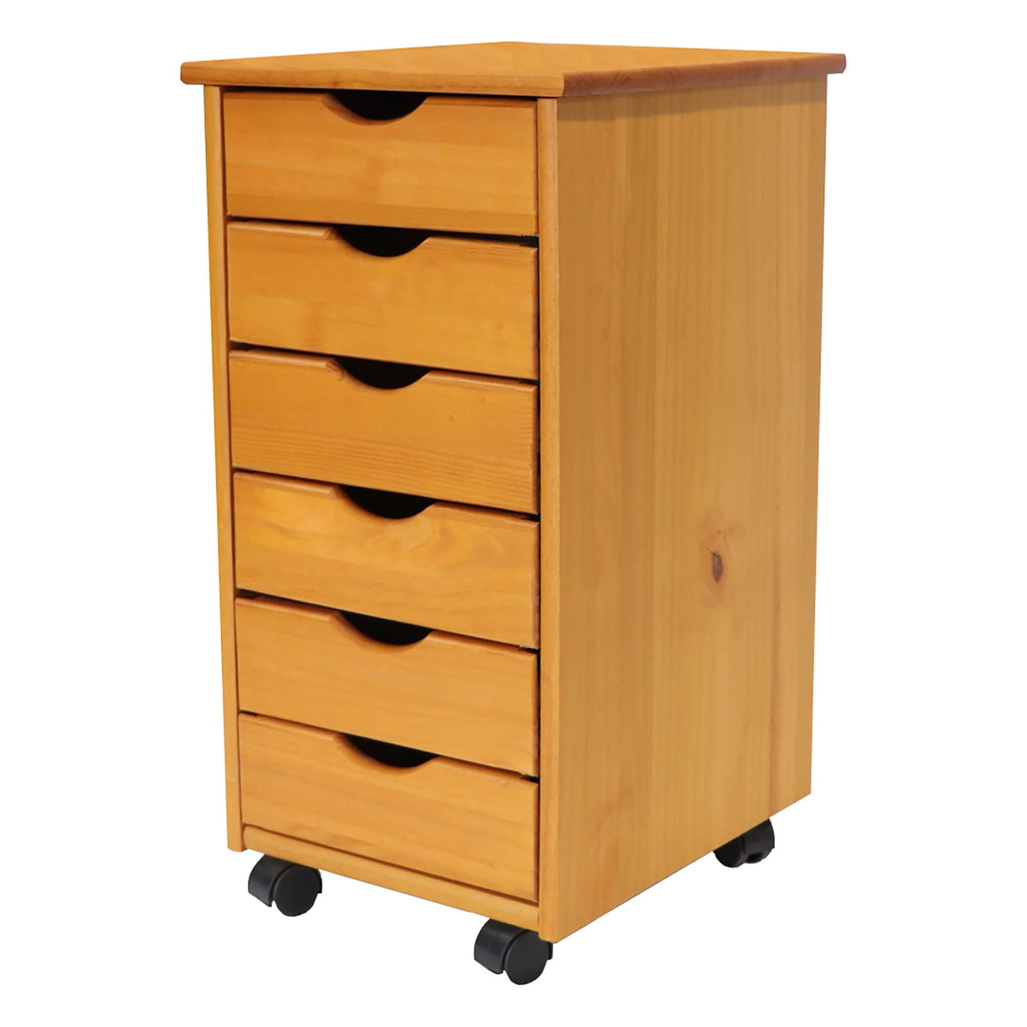 Wood Rolling Drawers-6 Drawer Rolling storage cabinet Wood construction Deep drawers Perfect for holding small items Wheels make transportation quick and easy Helpful for organizing your office or storing arts and crafts supplies Versatile option for workspaces, computer desks, hobby areas, and more Dimensions: 15.4″ L x 13.4″ W x 25.4″ H Drawer dimensions: 12″ L x 9.5″ W x 2″ H Product weight: 21 pounds Wipe clean with a damp cloth 6-drawer cabinet available in a medium pine