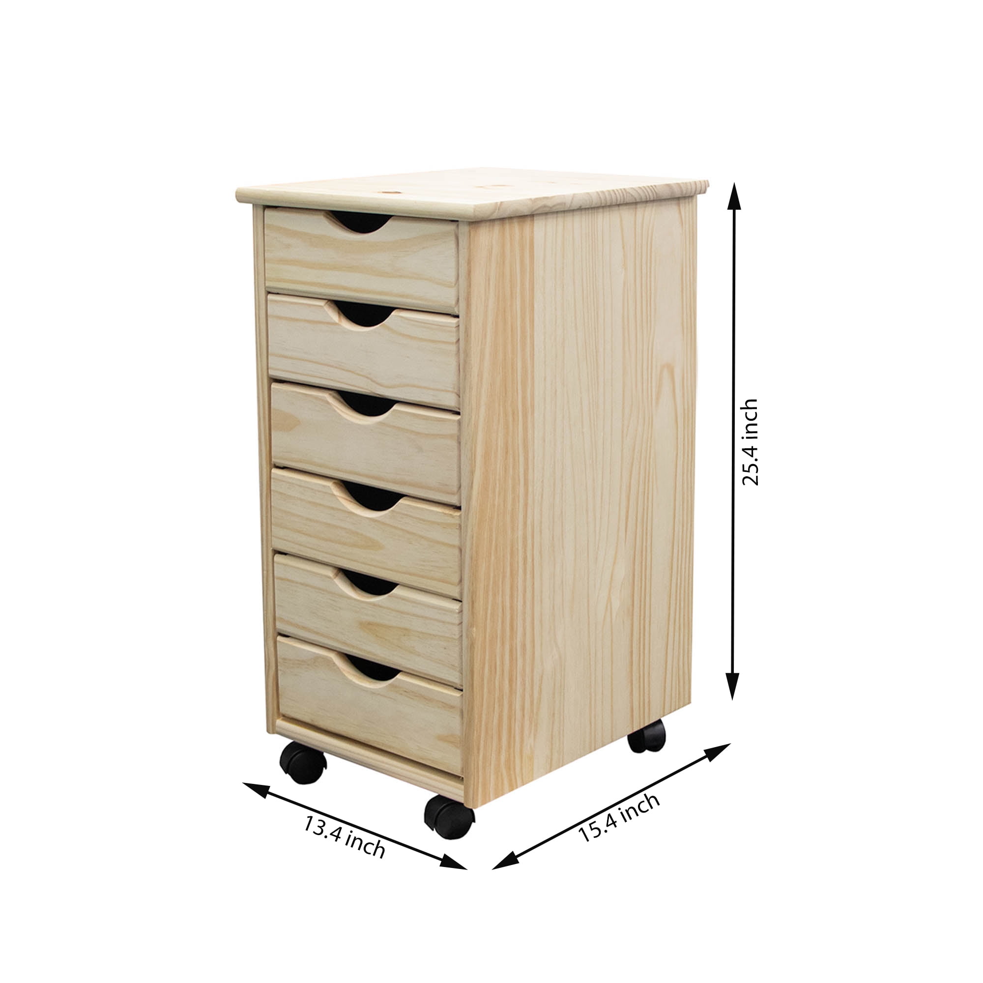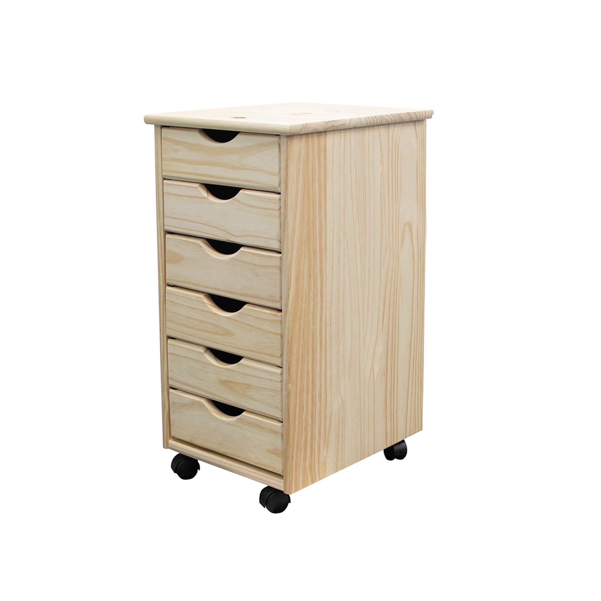 Jela Solid Wood 6 Drawer Roll Cart in Unfinished