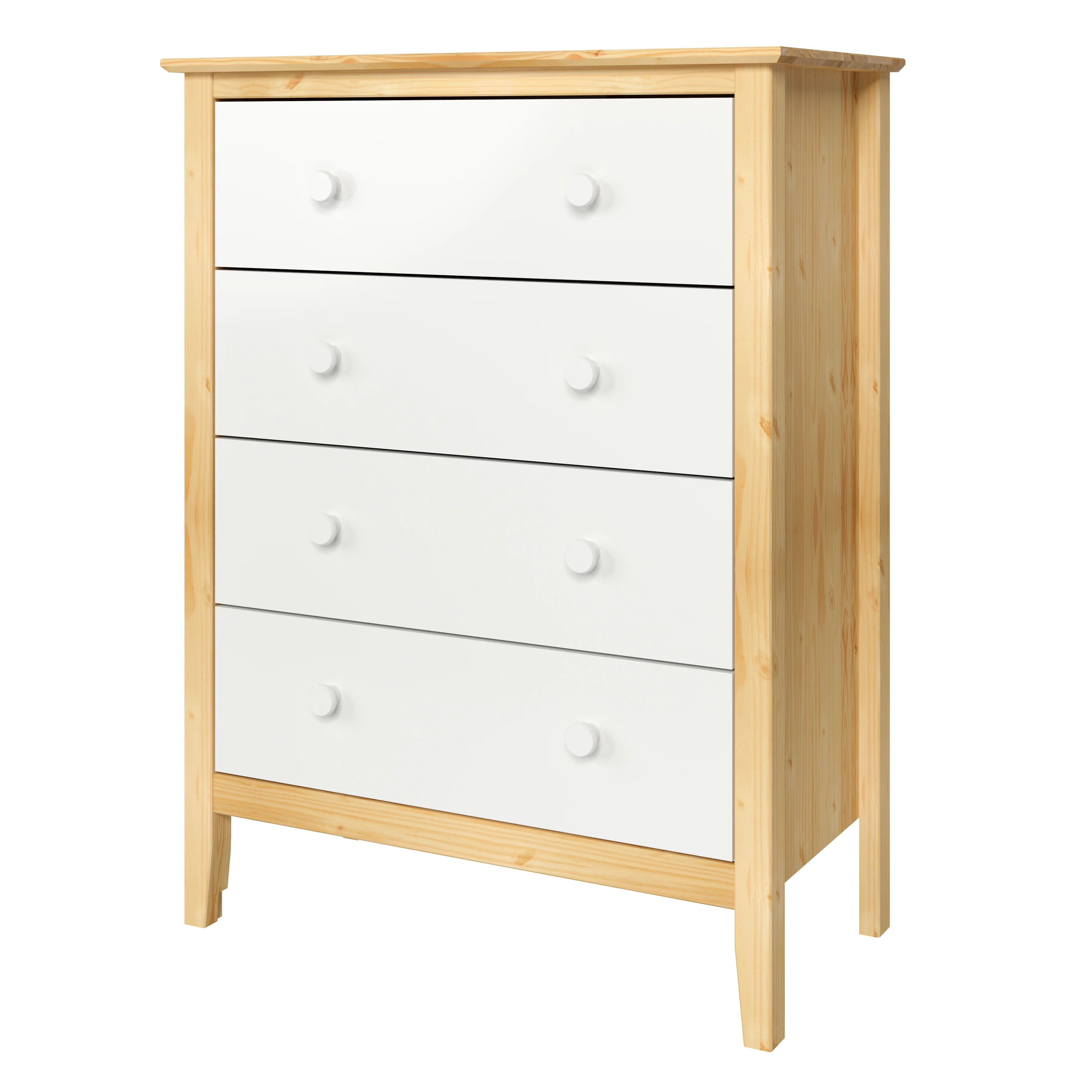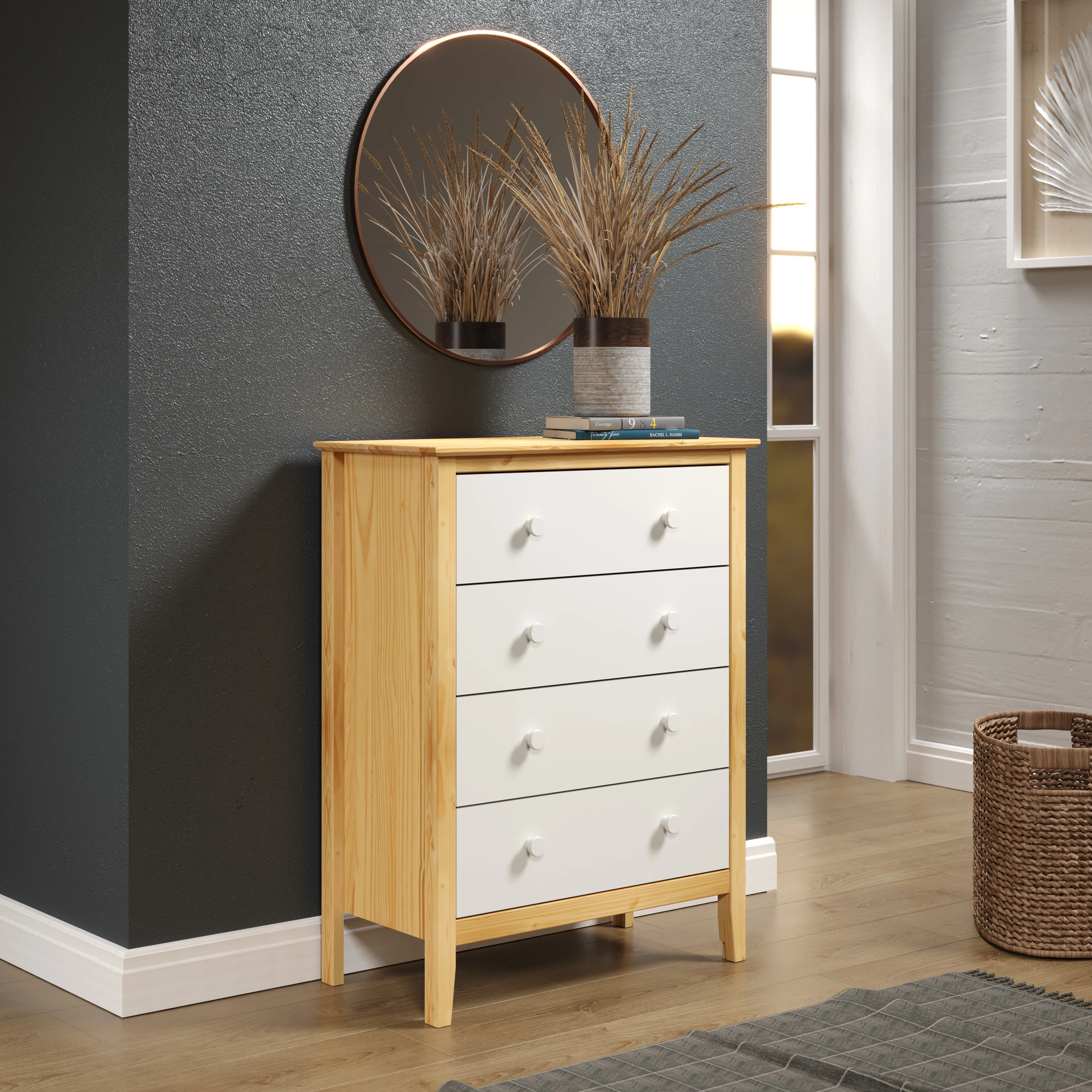 Jela Solid Wood Easy Pieces 4 Drawer Dresser Natural w/White Front, White and Natural Knobs