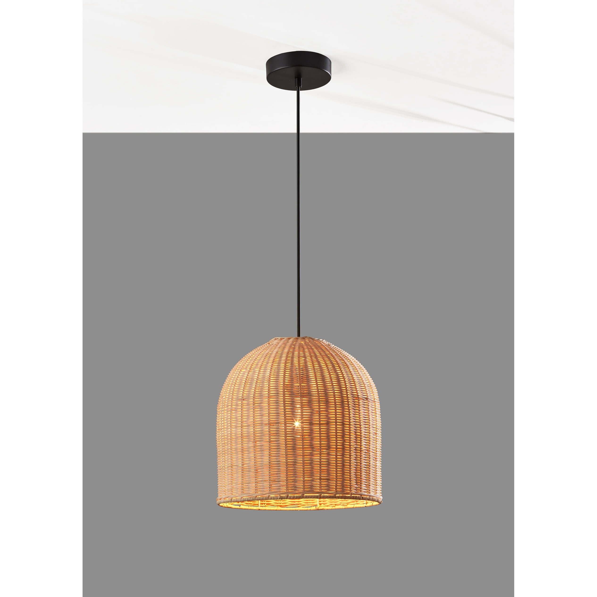 12″ diameter pendant shade creates a natural and relaxed focal point Dark bronze finish complements the rattan shade Warm and natural lighting perfect for kitchens, dining rooms, kitchen bars, and bedrooms
