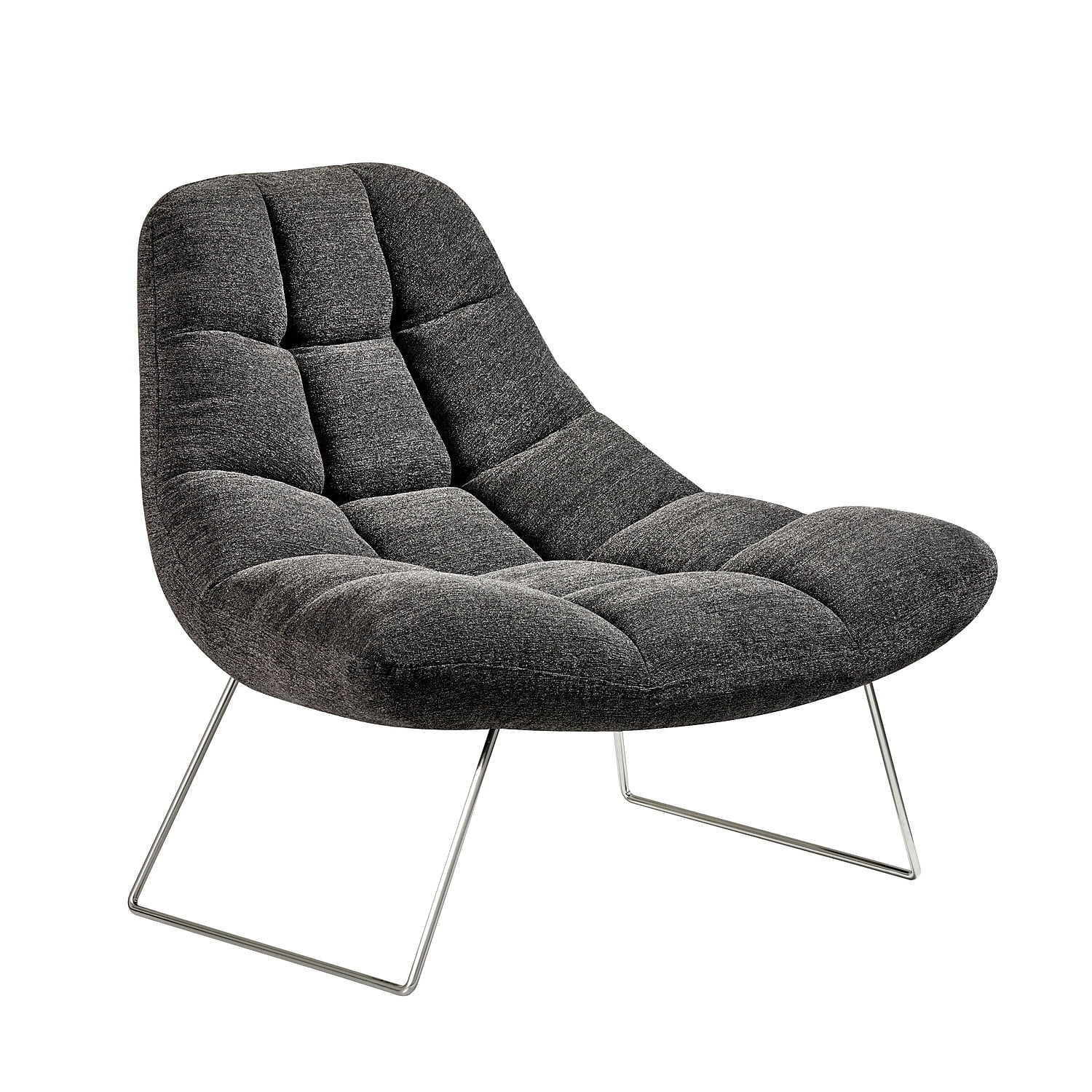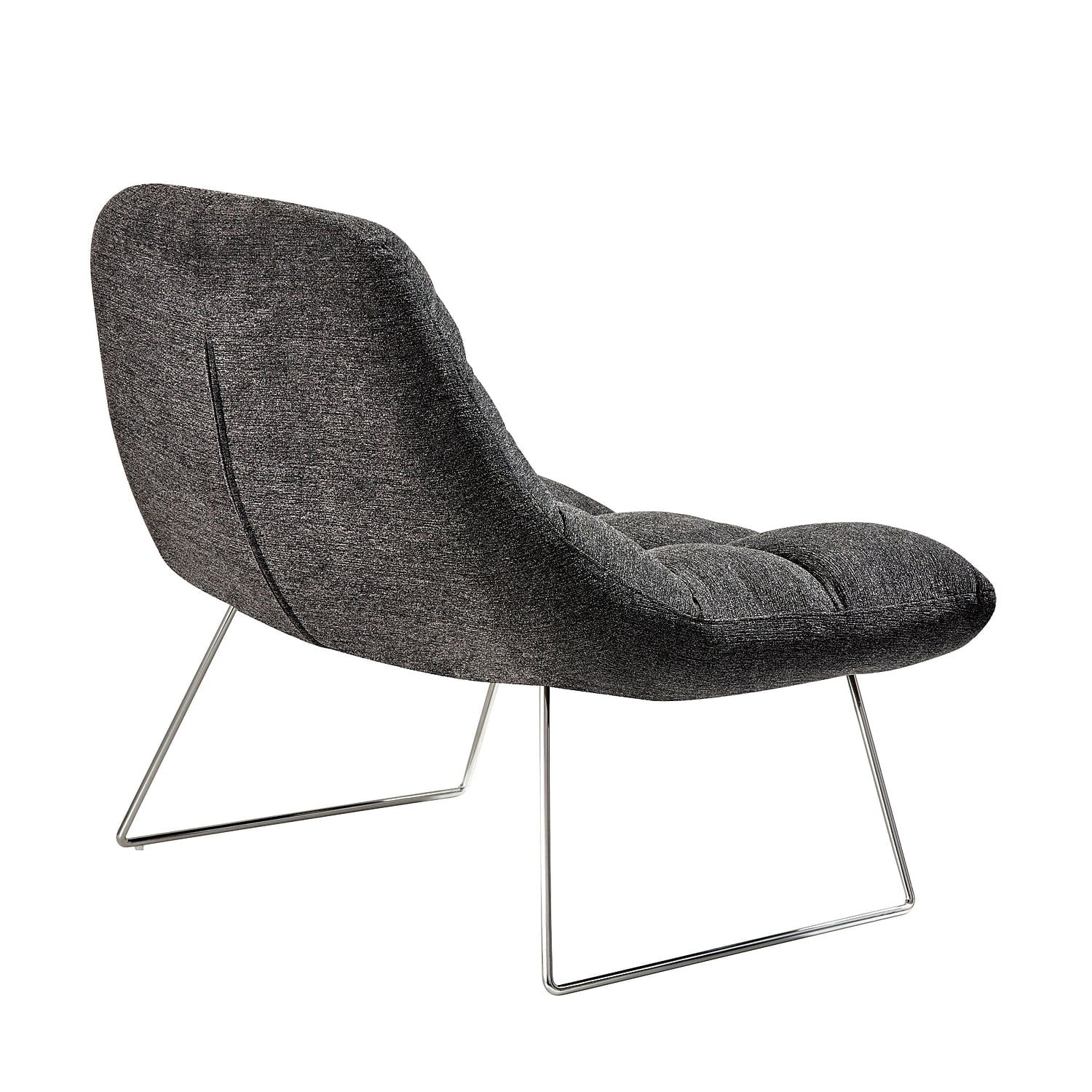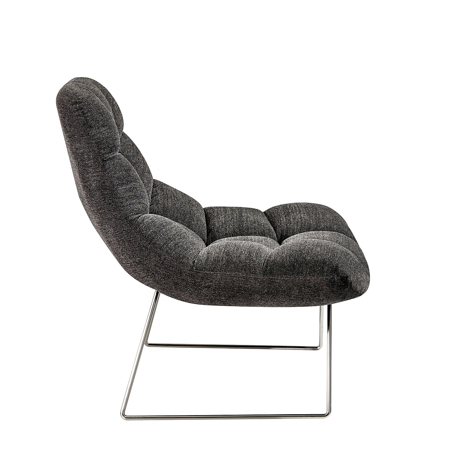 Bartlett Chair The Bartlett Chair makes comfortable look stylish! This cozy chair is meant for lounging, as it was made with an extra focus on comfort. Finished off with a slim, brushed steel frame and soft, textured charcoal fabric, this chair is also a great decorative accent to a modern-chic inspired room. The dark grey textured fabric is 100% polyester. With a seat width of 40, a seat depth of 17 and a seat back height of 24, this chair has plenty of room for relaxing. Overal dimensions are 40W x 33D x 33H. Dark Grey Soft Textured Fabric Brushed steel leg frame Weight Capacity: 350 lbs 33 D x 40W x 33 H