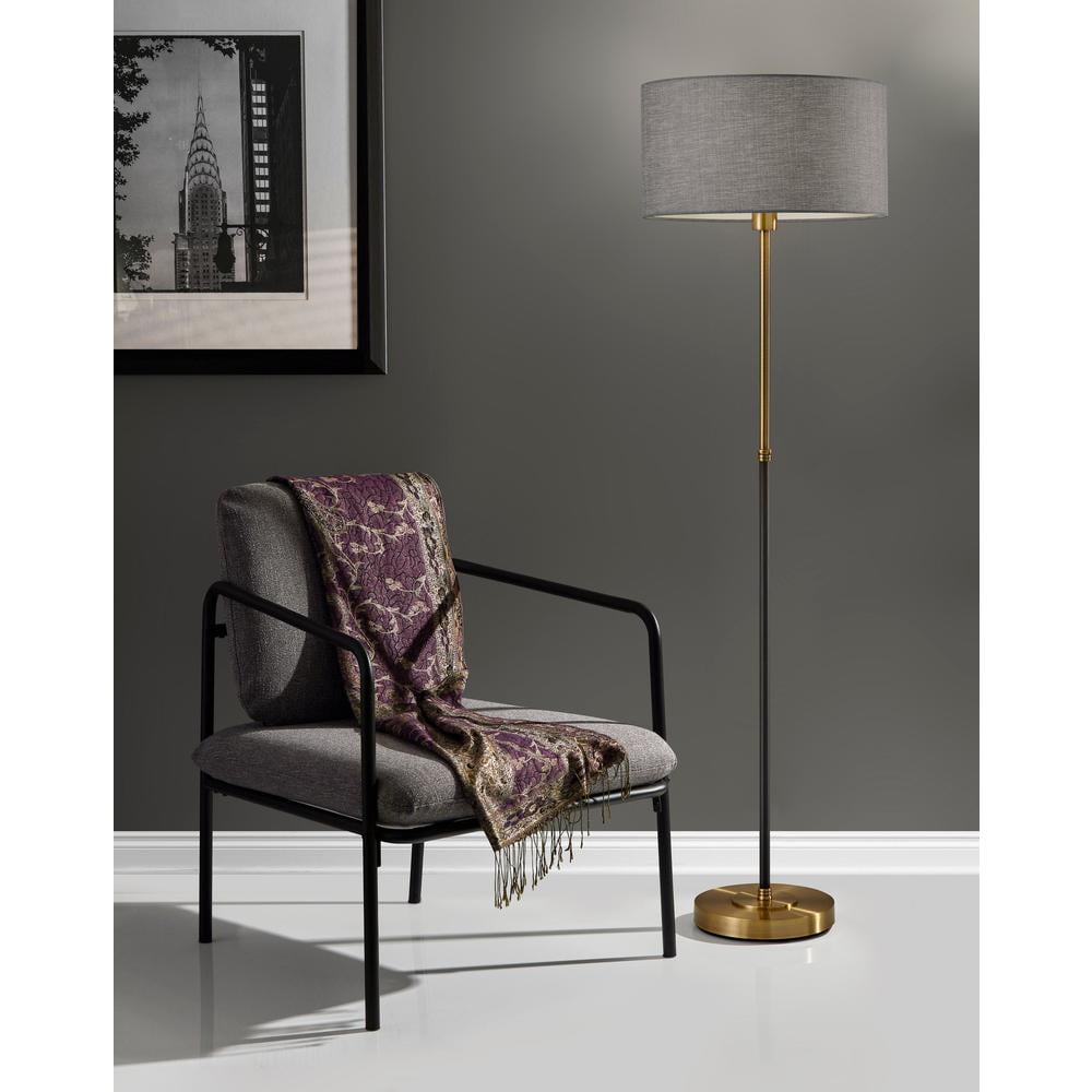 Decor Floor Lamp: A classic, mid-century look, the Bergen Floor Lamp is a modern light that creates a warm glow around the room. Black and antique brass metals are mixed to create a style that can fit into many settings. Antique Lamp: At a 59 in. total height, the Bergen Floor Lamp is perfect for next to the sofa or the corner of a bedroom. A soft, grey fabric shade reveals a delicate texture when lit. The cord is clear and inconspicuous. Unique Design: Elevate your home décor with mid-century modern lighting fixtures from Adesso. Our vast array of lighting options is sure to bring the perfect style and ambience into your home. Versatile Use: With a compact footprint and elegant design, Adesso Floor Lamps provide a large amount of light in a small amount of space. This functional lamp is ideal for a variety of interior settings including corners, entryways, bedsides, and more. Product Specifications: 59 in. height, 17 in. diameter shade, black and antique brass finish, grey textured fabric shade, clear cord, this lighting product is ETL listed, meaning that it has been tested and approved to meet the government-regulated safety standards for the USA.