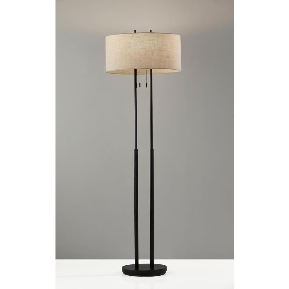 Modern Floor Lamp: A classic pairing of bronze finishes and oval-shaped taupe textured fabric makes the Duet floor lamp a perfect match for a modern farmhouse styled bedroom or living space. Two bronze poles each hold a socket to offer double light operated by a simple pull chain switch. Aesthetic Design: The bronze finished finials create the illusion of continuous poles. Turn one light on for soft, mood-setting lighting or turn both on for a room-filling glow. Décor Piece: Sleek designs and high-quality materials join together to bring a modern ambience into your home. Versatile Lamp: With a compact footprint and elegant design, Adesso Floor Lamps provide a large amount of light in a small amount of space. This functional lamp is ideal for a variety of interior settings including corners, entryways, bedsides, and more. Product Description: 62 in. height, 60 in. cord length, this indoor floor lamp features taupe textured fabric, double socket and requires two 60W Incandescent (not included) to work. This lighting product is either UL or ETL listed, meaning that it has been tested and approved to meet the government-regulated safety standards for the USA.