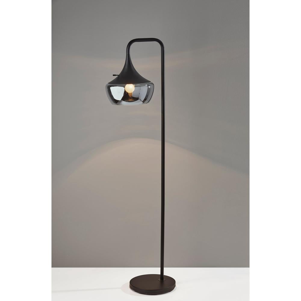 Accent Tall Lamp: The Eliza Floor Lamp is sure to stand out in your home whether it is turned on or off. The options are endless with this edgy, contemporary style. Black metal is mixed with a smoked mercury glass shade. Functional Design: A convenient 3-way rotary switch is located on the shade cup. The 3-way rotary socket switch will only work with a 3-way light bulb; otherwise this lamp will function with simple on/off switch at its highest setting. All Adesso lighting product is listed, meaning that it has been tested and approved to meet the government-regulated safety standards for the USA. Contemporary Decor Lamp: Elevate your home decor with contemporary lighting fixtures from Adesso. Our vast array of lighting options is sure to bring the perfect style and ambience into your home. Versatile Use: With a compact footprint and elegant design, Adesso Floor Lamps provide a large amount of light in a small amount of space. This functional lamp is ideal for a variety of interior settings including corners, entryways, bedsides, and more. Product Specifications: Contemporary Design: Black paired with smoked mercury glass and a strikingly unique silhouette, 3 Brightness Settings: A 3-Way switch allows for a low, medium and high light setting when using a 3-way compatible bulb, this lighting product is UL listed, meaning that it has been tested and approved to meet the government-regulated safety standards for the USA.