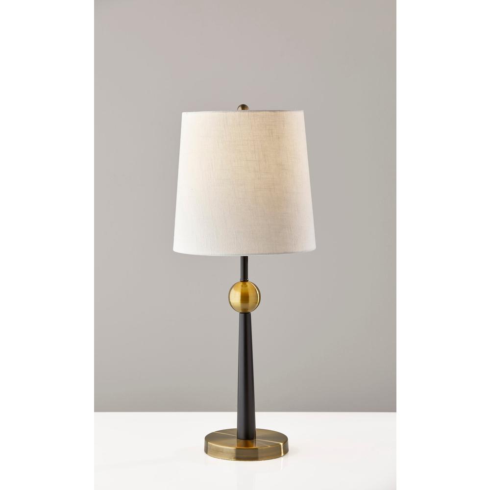 Adesso® Francis Table Lamp, 29″H, Off-White Shade/Black & Antique Brass Base