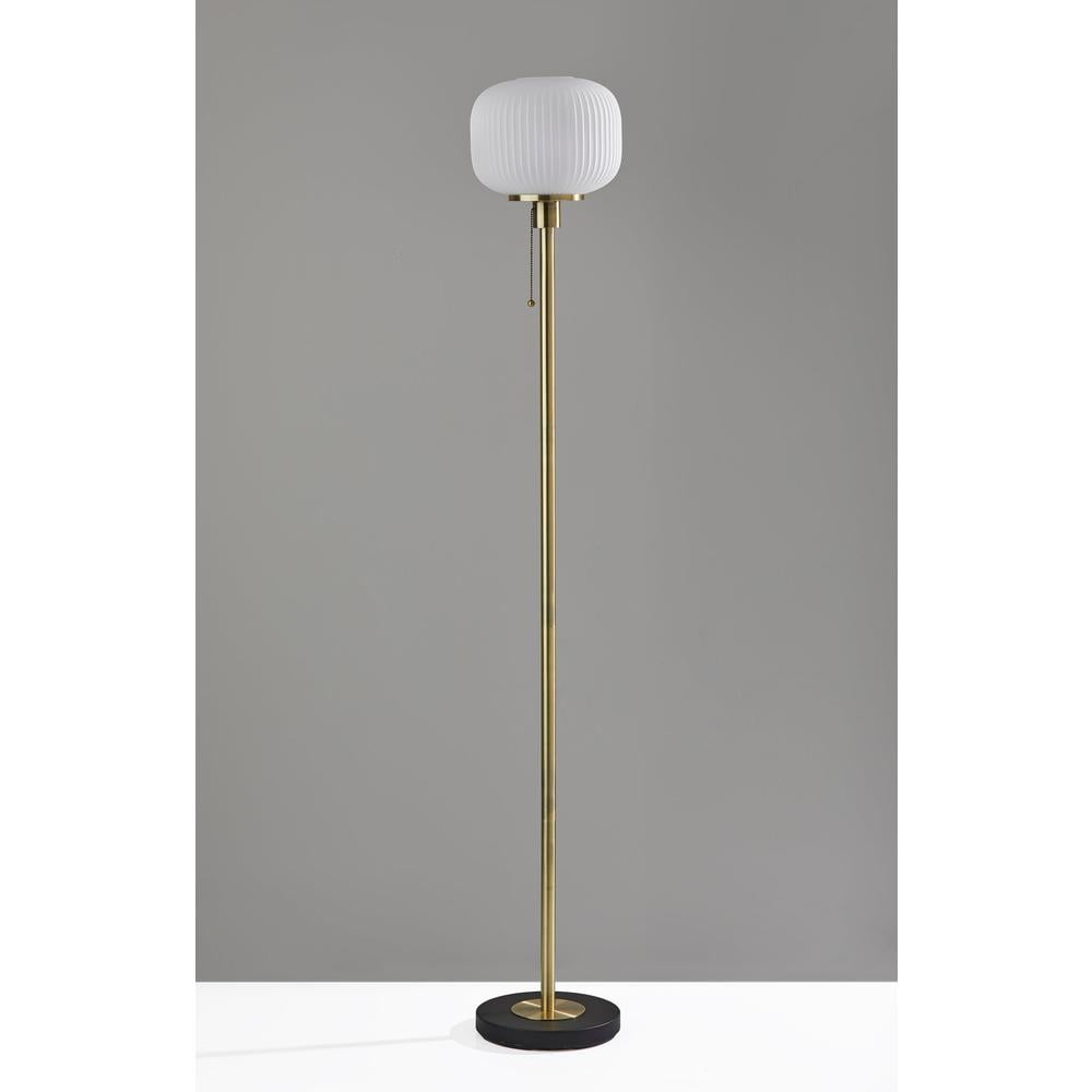 Decor Lamp: Add a classy touch of mid-century design to your space with the Hazel Floor Lamp. A frosted ribbed glass shade emits a beautiful ambient glow when lit. Turn the lamp on and off with a convenient pull chain switch. Functional Design: An antique brass finish and a black base add to the clean, modern design. All Adesso lighting product is either UL or ETL listed, meaning that it has been tested and approved to meet the government-regulated safety standards for the USA. Decorative Glass: Elevate your home décor with decorative glass lighting fixtures from Adesso. Our vast array of lighting options are sure to bring the perfect style and ambience into your home. Floor Lamp: With a compact footprint and elegant design, Adesso Floor Lamps provide a large amount of light in a small amount of space. This functional lamp is ideal for a variety of interior settings including corners, entryways, bedsides, and more. Product Specifications: A mix of antique brass and frosted ribbed glass create a unique mid-century design, Convenient Easy on/off pull chain switch, This lighting product is ETL listed, meaning that it has been tested and approved to meet the government-regulated safety standards for the USA.
