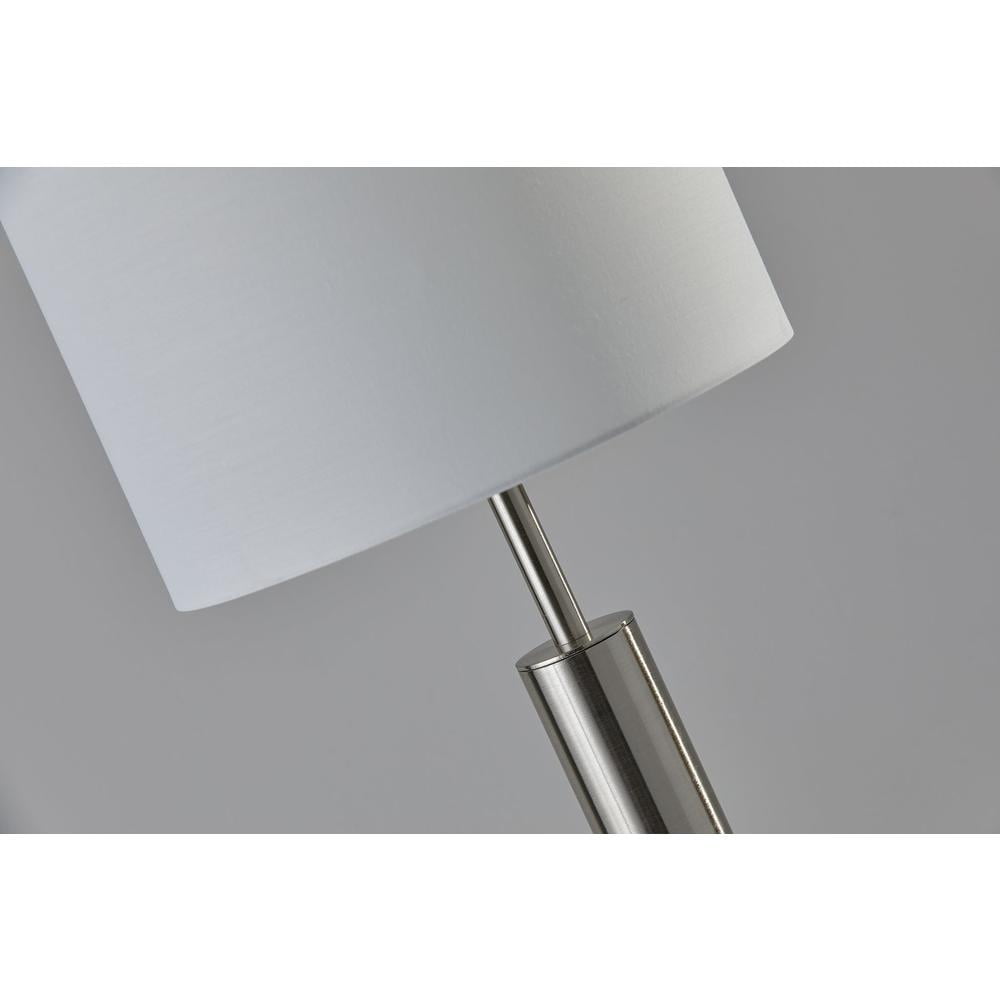Brushed steel finish Ivory silk fabric shade Easy On/Off Touch Switch 58 height This lighting product is either UL or ETL listed, meaning that it has been tested and approved to meet the government-regulated safety standards for the USA.