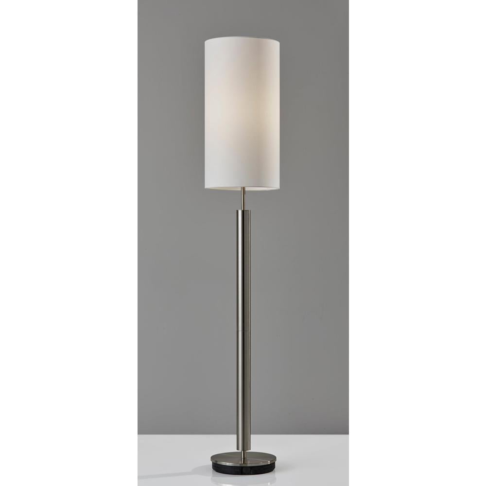 Hollywood Floor Lamp A simple, classic style with a bold presence, the Hollywood floor lamp is the perfect choice for a modern bedroom or sophisticated living space.. The tall ivory silk shade complements a chunky brushed steel pole. Control the light with a convenient on/off touch sensor switch. Bulb is not included. Brushed steel finish Ivory silk fabric shade Easy On/Off Touch Switch 58 height This lighting product is either UL or ETL listed, meaning that it has been tested and approved to meet the government-regulated safety standards for the USA. – Finish: Brushed Steel – Dimensions: 10.5”W x 10.5”D x 58”H – Collection: Hollywood – Item Depth: 10.5 – Item Height: 58 – Item Width: 10.5 – Item Weight: 9.7 – Item Color: Silver – Indoor/Outdoor: Indoor – Bulb: 100W – Design/Style: Modern Chic – Item Material: Electric : 17.4%,Shade : 23.3%,Metal :59.3%