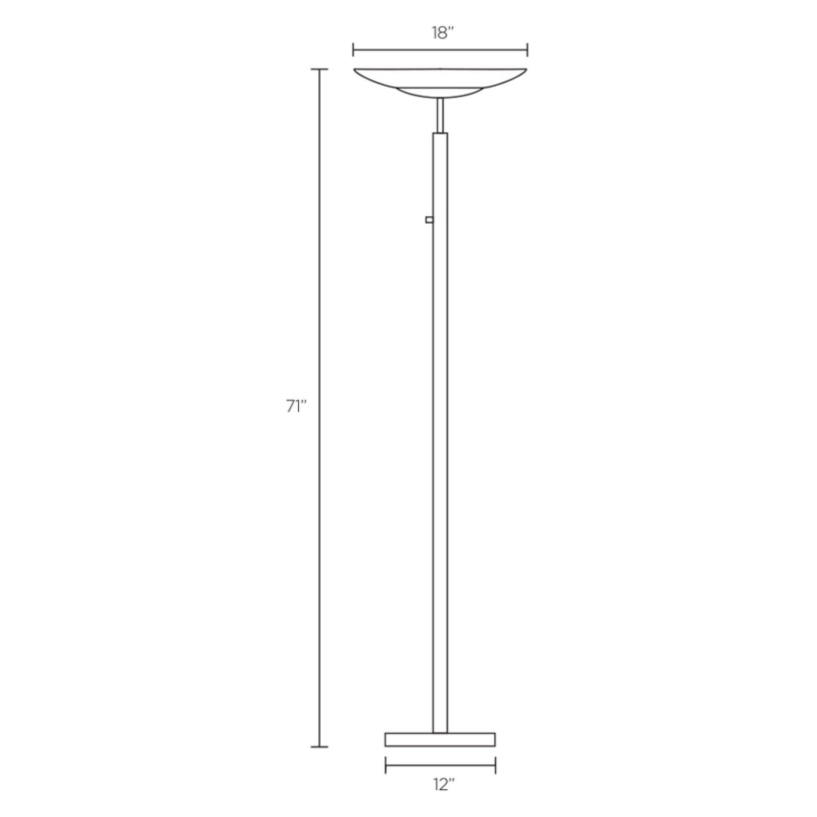A bold presence of style and energy efficiency, the Adesso Stellar LED Torchiere offers 2,500 lumens of warm, bright light that can be dimmed with a full range rotary dimmer switch. The sleek design and a frosted glass shade enhances a modern or contemporary setting. Brushed steel construction adds a modern flair to the room. Ripple glass shade creates a soft, warm glow that’s great for almost any task. 24W LED bulb (included) generates up to 2,500 lumens of light
