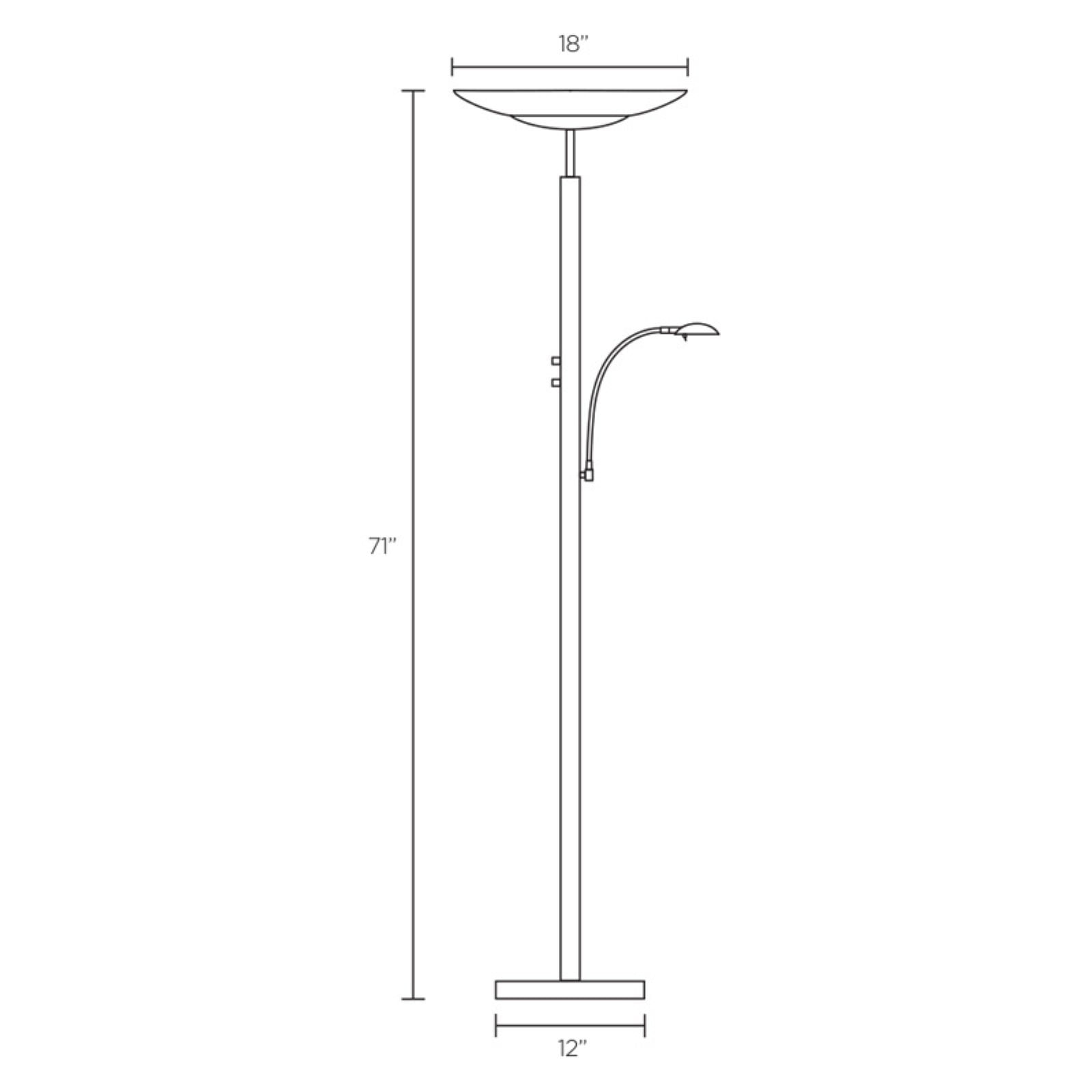 A bold presence of style and energy efficiency, the Adesso Stellar LED Torchiere offers 2,500 lumens of warm, bright ambient uplighting as well as an adjustable, task light for reading. The sleek design with a brushed steel finish and a frosted glass shade enhances a modern or contemporary setting. Brushed steel base and frosted glass shade fit well into a wide range of room décors