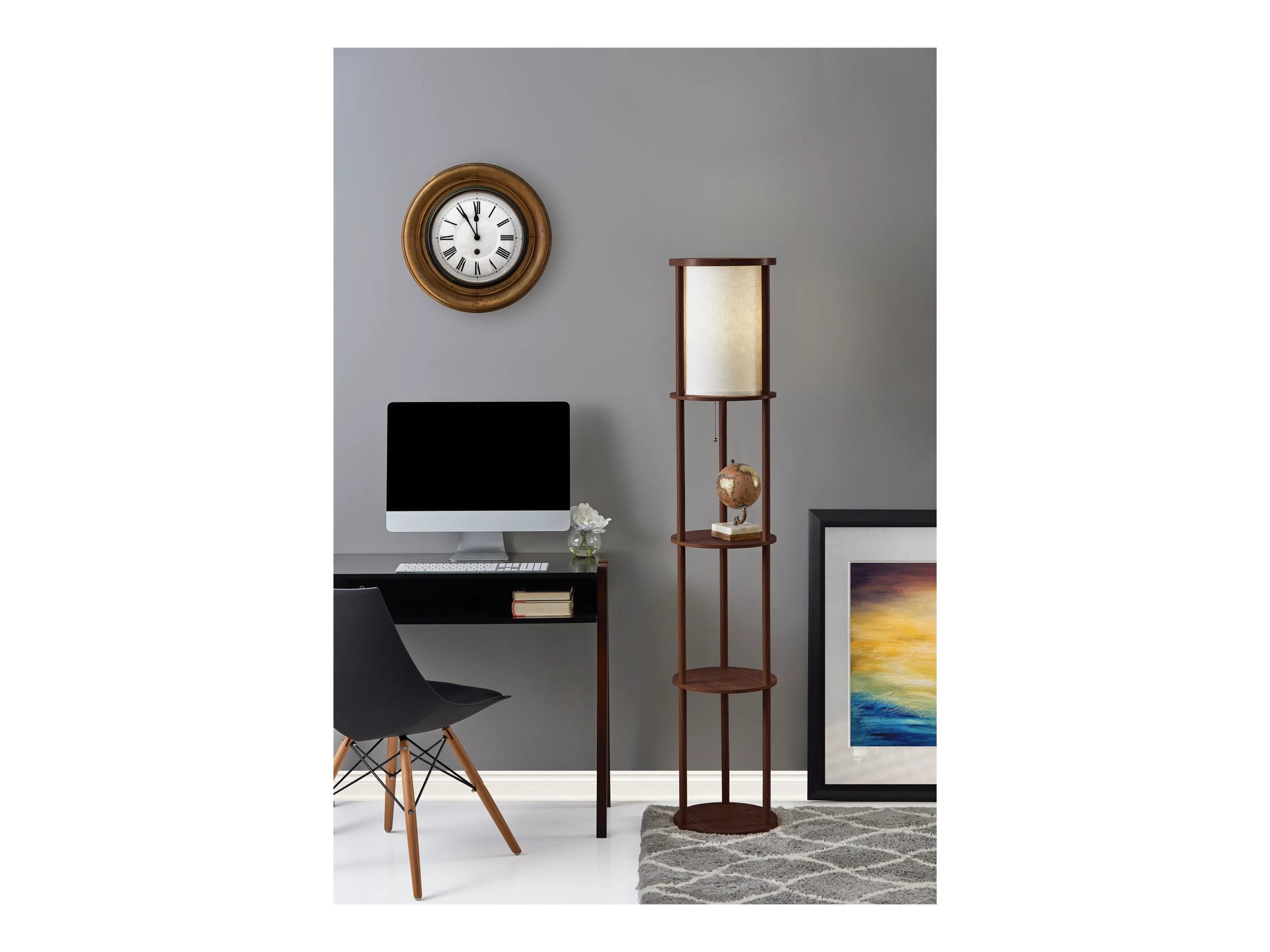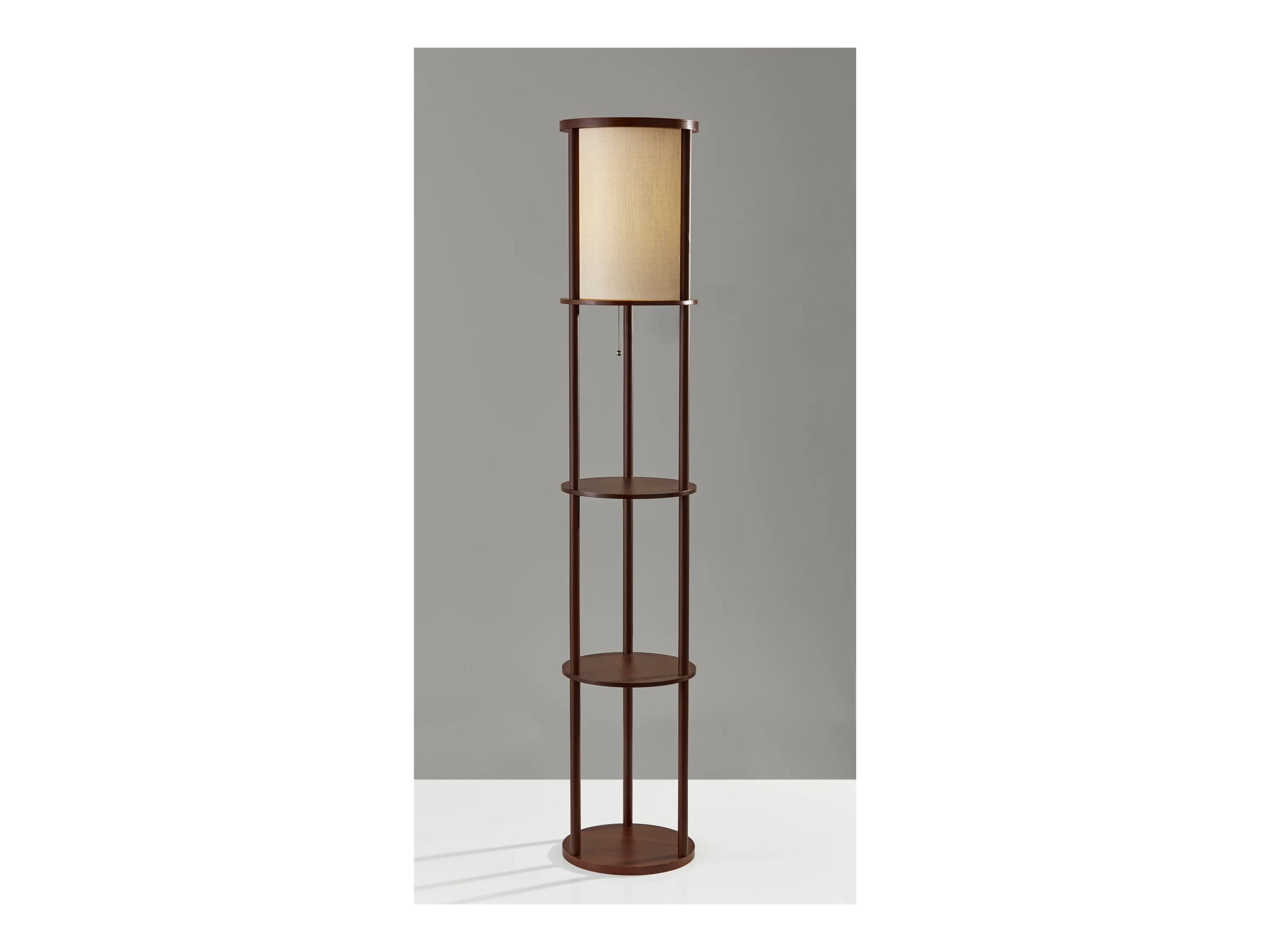 Adesso Stewart Round Shelf Floor Lamp, MDF Shelves with Walnut Wood Veneer and Beech Wood Tubes