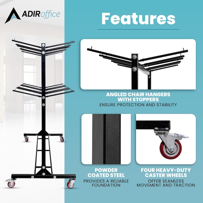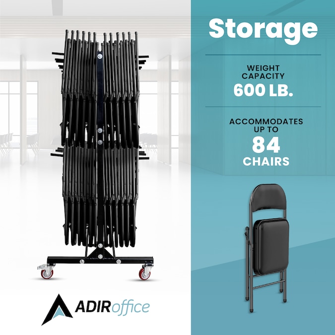 - The AdirOffice folding chair carrier is designed to store chairs on both sides, with a weight carrying capability of up to 600 lbs and a powder-coated steel cart body, resting on four 4in thermo-plastic rubber locking wheels, in order to ensure a long lasting and useful provided utility cart