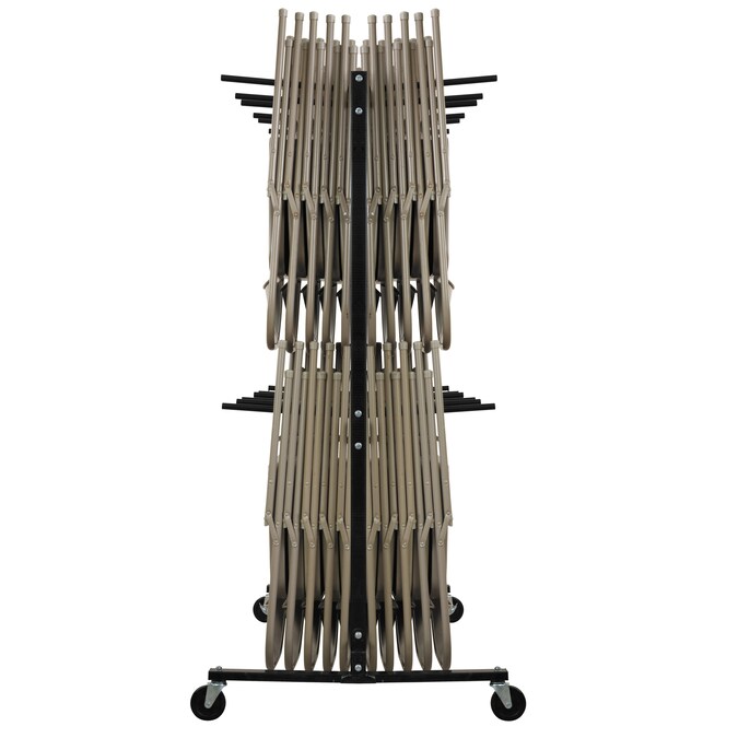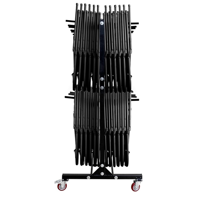 - The powder-coated steel body of the Folding Chair Cart rests on four thermoplastic rubber locking wheels in order to provide easy movement and smooth traction on virtually any surface