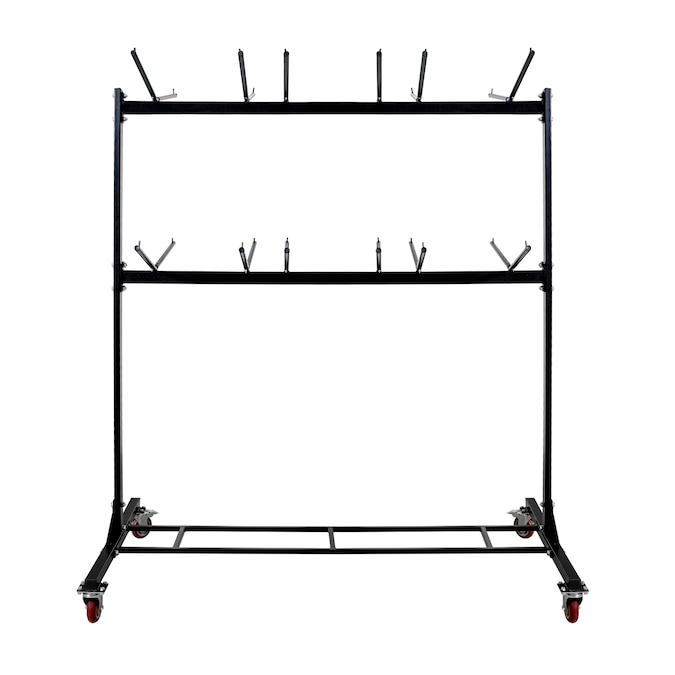 The AdirOffice two tier chair cart is a great tool to help accelerate the time it takes to set up and pack down your folding chairs. This cart was designed to store chairs on both sides and has a maximum capacity of 84 metal or plastic chairs. The chair arms also come complete with rubber stoppers to avoid damage and to prevent contents from unwanted shifting. The outer body of the cart is made from durable powder-coated steel and sits on four 4 in swivel caster wheels. These wheels float freely and work effectively on most flooring when moving the cart through doorways and other tight spaces. It is a perfect solution for storing and easy deployment of folding chairs when required.