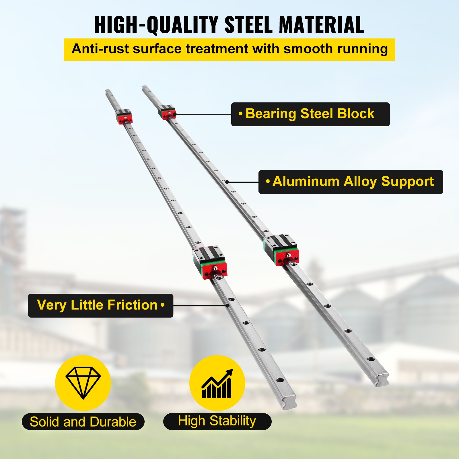 HSR15-1500 mm Linear Guideway Rail w/ Square block: The linear motion products and technology are widely used for automatic mechanical facilities under common accuracy; HG series linear guideways are designed with load capacity and rigidity higher than similar products with circular-arc groove and structure optimization;; [Package Content] 2 x Rail; 4 x Blocks