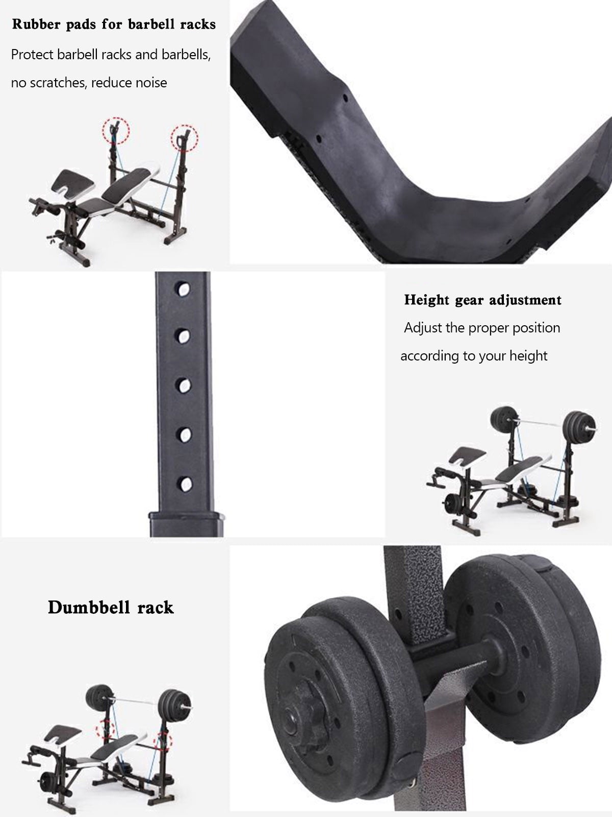 Embark on your fitness journey with your very own home gym! From upper body to leg workouts, this all-in-one machine is ideal. It provides luxury cushions, a barbell rack, and a no-pinch grip design for a comfortable workout. It’s compatible with Olympic weight sets up to 770 lbs and is a space-saving addition for your home gym. 1 x Weight Bench (Barbell and weight plates not included) 1 x Bench rack 1 x Screw pack 1 x Accessory kit 1 x Instruction