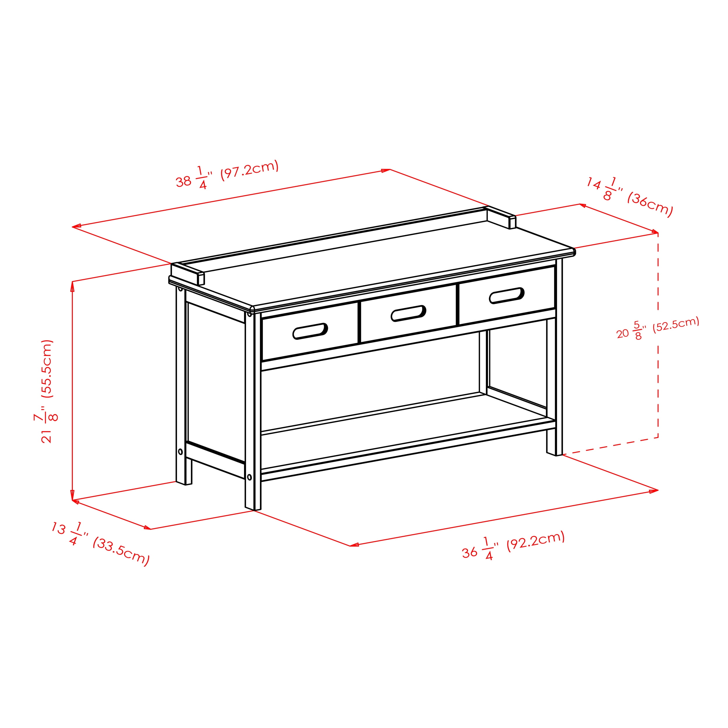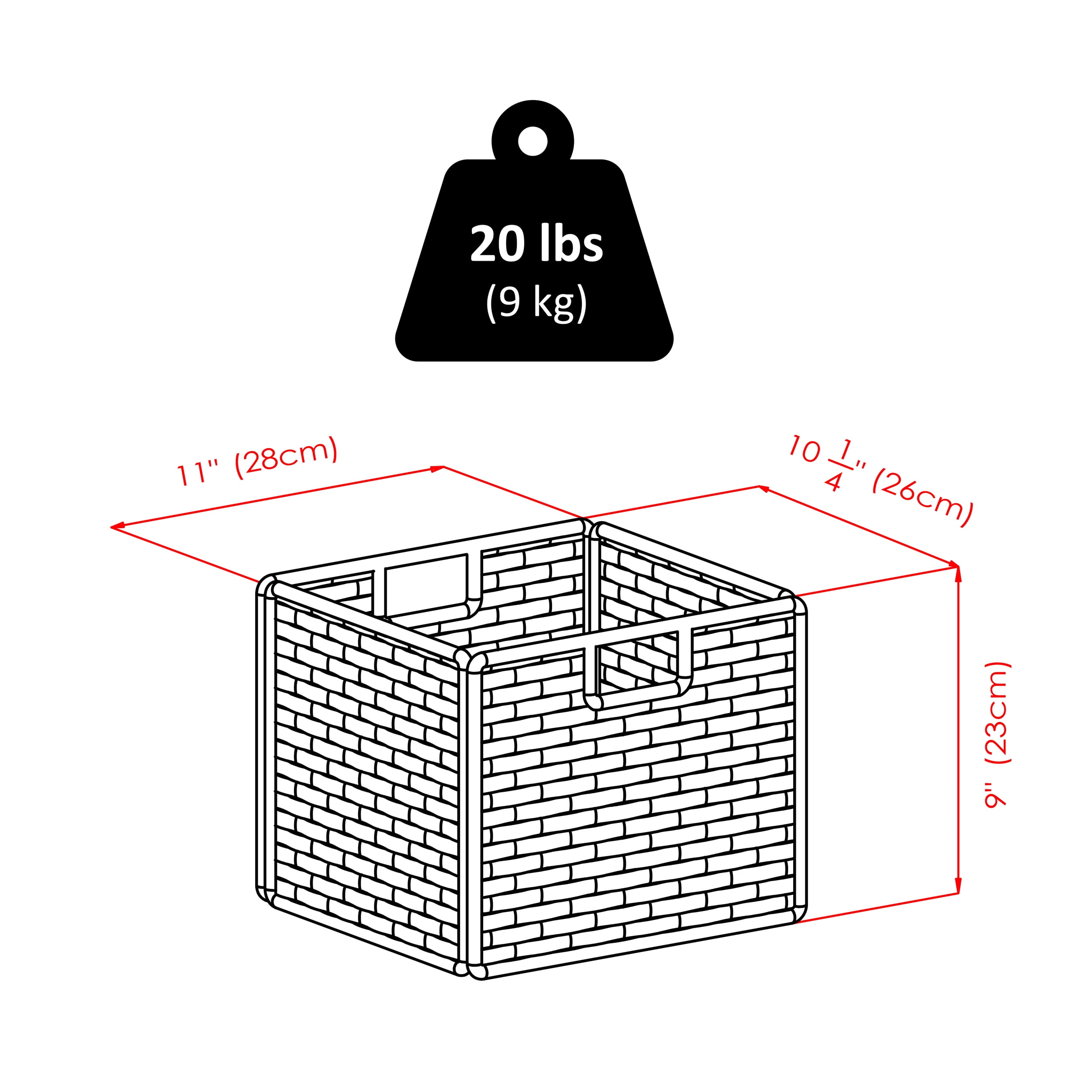 3 Drawers and 3 Baskets Baskets fold for easy storage Baskets made of durable woven rope, finished in Walnut Basket open size 10.24″W x 11.02″D x 9.06″H Bench made of solid and composite wood Ships in 2 boxes Assembly required for shelf unit only