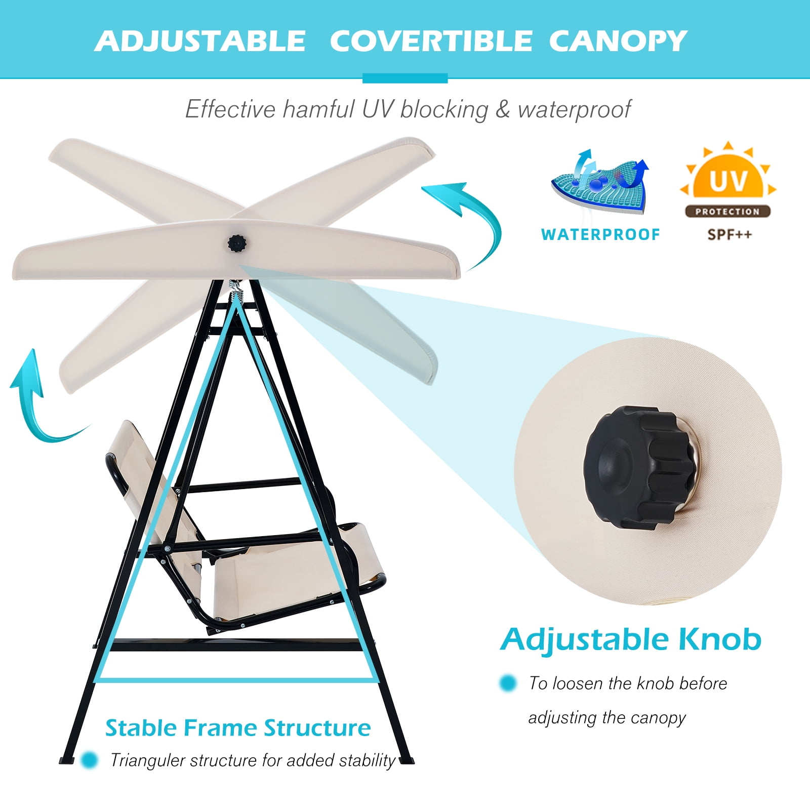 AECOJOY 2 Persons Outdoor Patio Canopy Steel Porch Swing Chair-Beige