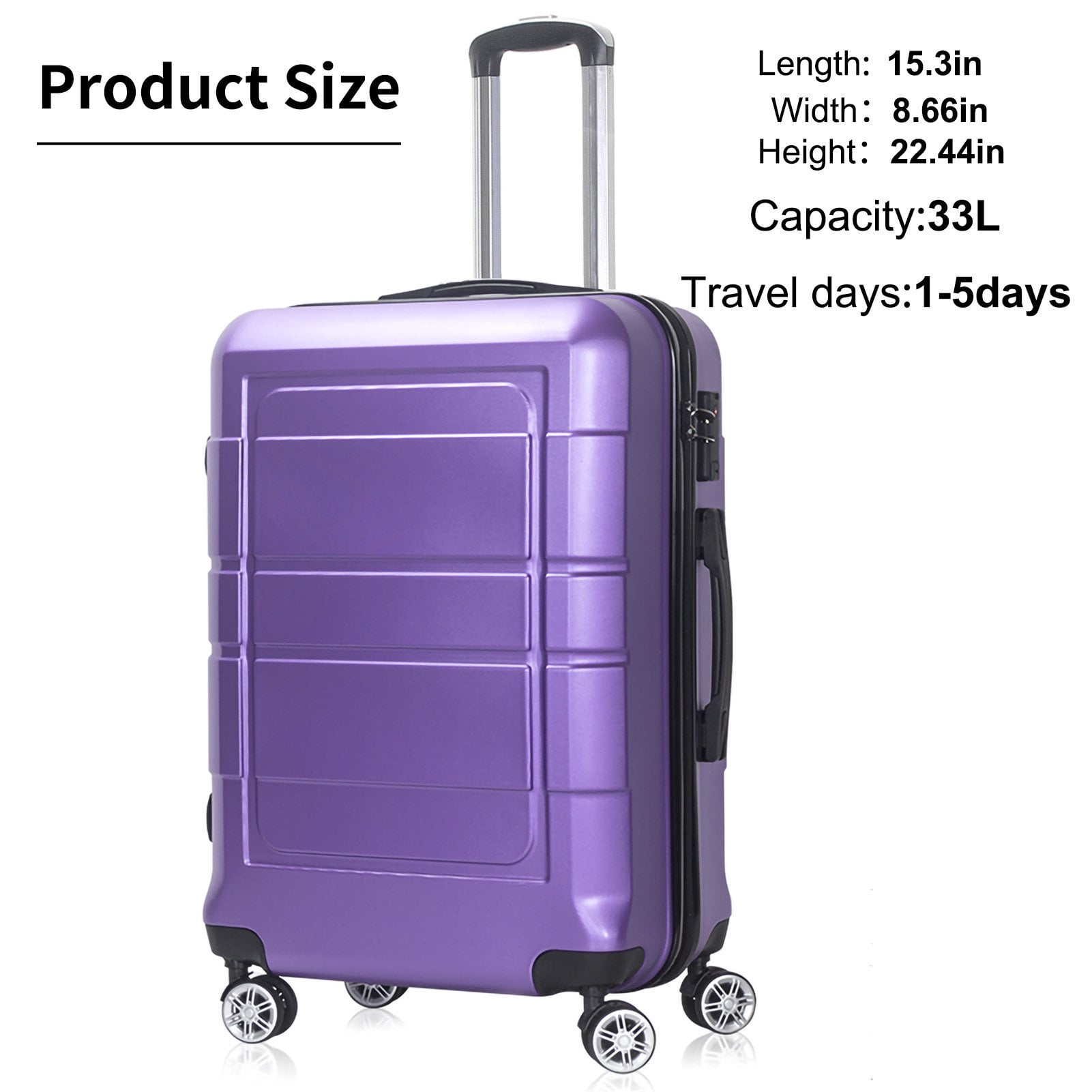 AEDILYS 20 Inch Carry On suitcase is here to help you make the most out of your traveling experience, using highly tested materials to guarantee the durability and reliability of each suitcase. Zippered compartment on one side and tie-down straps on the other side for easy packing. These lightweight luggage sets have smooth gliding self-repairable oversized zippers. Get more from your luggage, perfect for business and family trips. Our carry-on is designed to be accepted by most airlines onboard and has the perfect interior for overnight capacity and weekend getaways. 20 inch suitcase suitable for carrying onto the plane. Size: L22in* W8in* H14in Weight: 5lbs Travel days:1~4days Features: — Lightweight ABS engineered material with brushed finish. The hard-flex construction offers maximum strength, durability and a water/scratch resistant finish. — 4 dual spinner 360° silent wheels for effortless mobility — Full interior fabric lining with zippered compartment on one side and snap-on straps on the opposite side for easy packing — Built-in 3 digit TSA approved combination lock — Top and side ergonomic GEL handles for comfortable and easy lifting — Push Button Locking internal retractable trolley system — Smooth gliding oversized zippers
