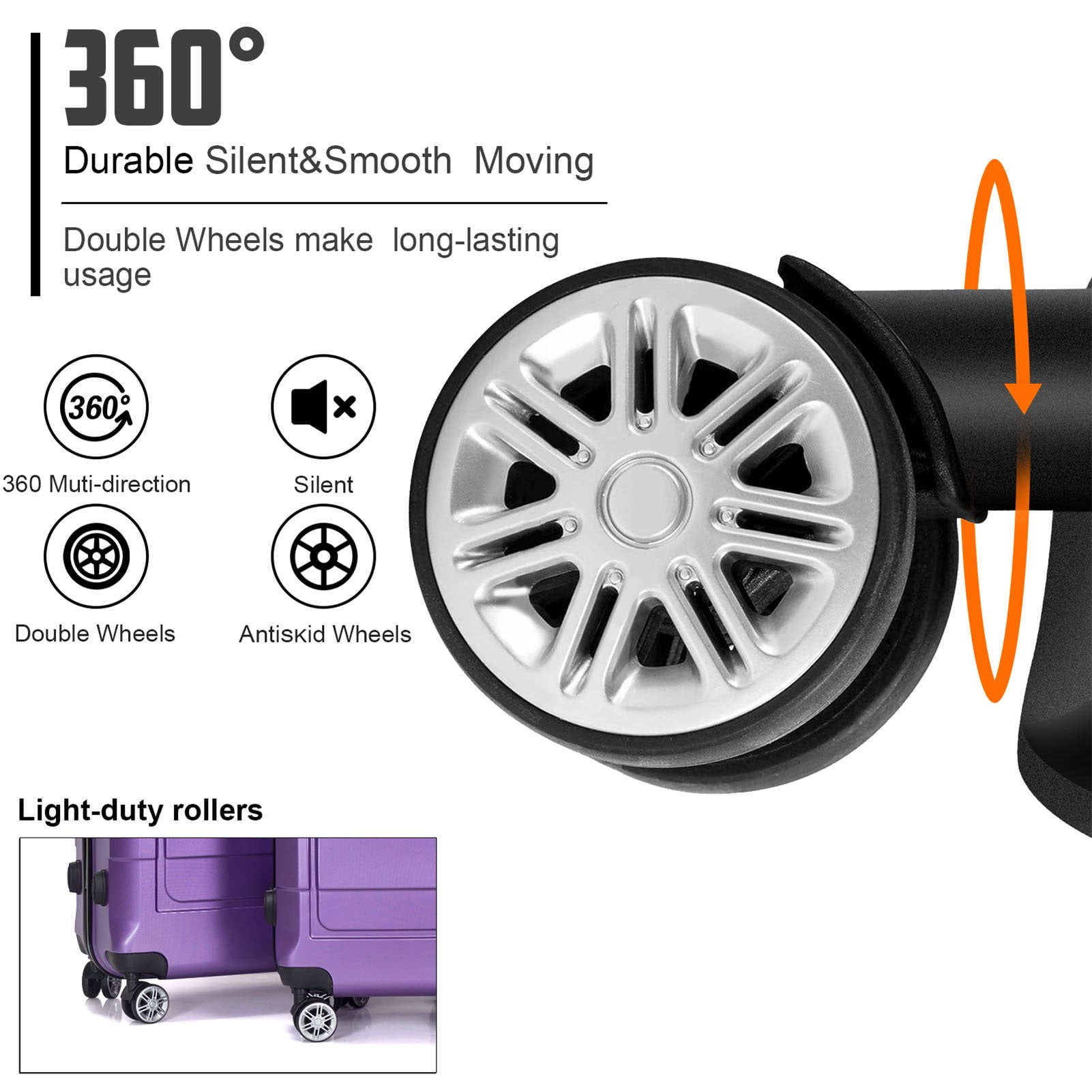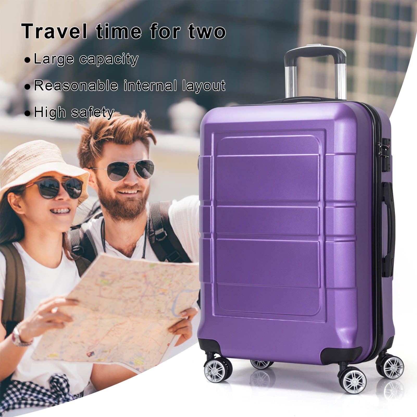 LIGHTWEIGHT AND DURABLE: This travel bag has lightweight ABS and PC printed film engineered material and manufactured with a micro diamond finish. Its front and back shells are scratch and water resistant. DELUX INTERIOR: This 20 inch carry on luggage bag organizer has smooth gliding self repairable oversized zippers and tie-down straps on the other side for easy packing. SPINNER WHEEL: This spinner luggage has four spinner wheels with 360-degree multi-directional mobility that keeps weight off your arm. It has four side studs allows the luggage to stand upright on their side. ERGONOMIC HANDLE: This rolling suitcase has top and sides ergonomic GEL handles for comfortable and easy lifting when checking baggage. This suitcase is the perfect choice for business and family trips. TROLLEY SYSTEM: This travel rolling suitcase has push-button locking handles that can easily be extended out from the suitcase and store neatly inside. TSA approved combination lock to ensure the security.