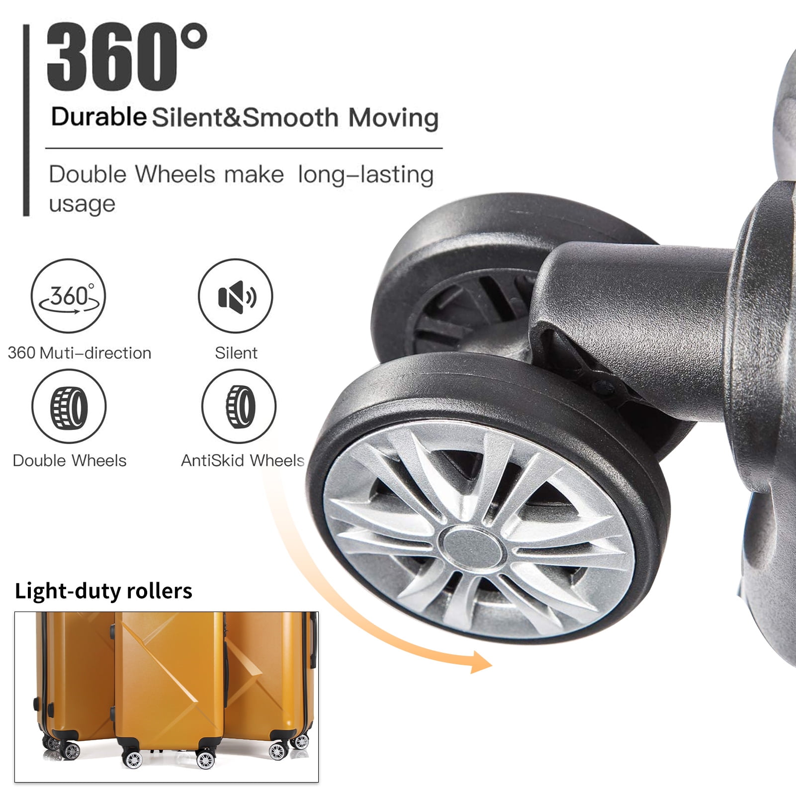 3 Piece luggage set fits inside each other, features one 28inch suitcase for consignment, one 24inch suitcase for checking in and one 20inch suitcase suitable for carrying onto the plane. AEDILYS Luggage Set Package Includes: 1 x 20 inch Trolley Case 1 x 24 inch Trolley Case 1 x 28 inch Trolley Case AEDILYS Luggage Set Measures: Size: 20″: L22in* W8in* H14in 24″: L25in* W10in* H16in 28″: L29in* W11in(14in when it is expandable)* H19in Capacity : 20″: 43L 24″: 72L 28″: 105L Weight: 20″: 5lbs 24″: 6lbs 28″: 8lbs Travel days: 20″: 1~4days 24″: 4~7days 28″: 7~9days ABS+PC Hard Plastic Shell: It goes through insanely strict quality control test standards, creating strong and sturdy pieces that can withstand any forms of rough handling. 3 Piece Set Size: 20 inch Carry On (meets carry on size restrictions for those traveling domestically and looking to stay light) ,24 inch and 28 inch LUGGAGE (maximize your packing power and the ideal checked bag for longer trips). EFFORTLESS HANDLING: Multi-directional 4-wheel spinners allow smooth 360° degree movement on any terrain for complete mobility free-weight rolling. Four molded side feet allow luggage to stand upright on its side. Retractable push-button telescoping handle with two lock positions for ultimate control and maneuverability. Top and side easy grab handles. ORGANIZED COMPARTMENTS: Two spacious fully lined compartments allow for double sided packing. Large interior organizer zipper pocket to store smaller items. Garment restraint straps help hold clothes and contents in place. LIGHTWEIGHT & DURABLE: Durable, lightweight, and water-resistant hardshell. Easily cleaned. Molded corner guard reinforcements absorb/deflect shock for maximum impact resistance and lightweight construction helps you adhere to airline weight restrictions to avoid unneeded airport fees.