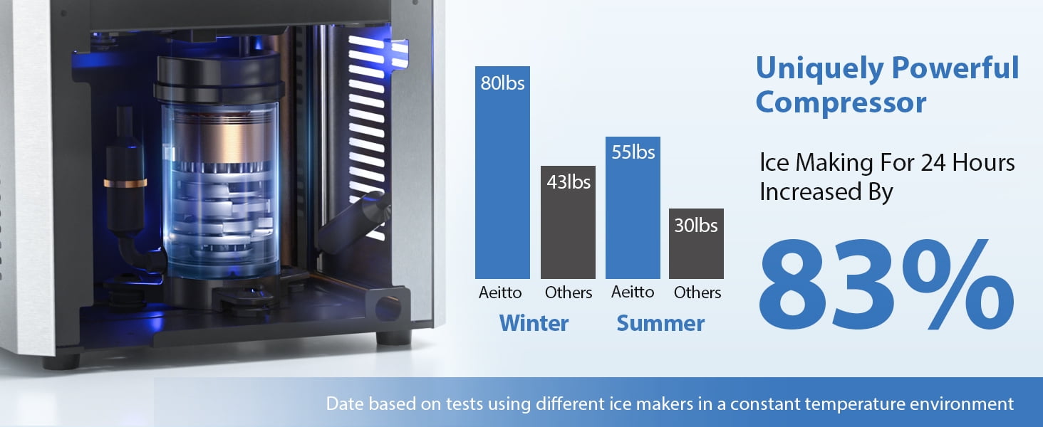 “The Aeitto Nugget Ice Maker Countertop is a powerful and efficient ice machine that can produce up to 55lbs of chewable, crunchy nugget ice per day. With a large 3.6L water tank and 3.3lb removable ice basket, it ensures you always have enough ice for your drinks, parties, and gatherings. The rapid ice release feature delivers ice in just 5 minutes, while the automatic ice-making cycle and self-cleaning function provide convenience and hassle-free operation. Crafted with a sleek stainless steel housing, this stylish ice maker is a perfect addition to any kitchen or home bar, offering a reliable and user-friendly ice-making experience. This nugget ice maker can produce up to 55lbs/day, and has a low noise level. Aeitto ice machine can bring you an efficient and fast ice maker experience. This nugget ice maker features advanced technology that releases ice in 5 minutes, reducing wait times and letting you enjoy your drinks and parties sooner. With 3.6 L water tank and 3.2 lb removable ice basket, this nugget ice maker countertop allows you to make large quantities of ice with a single fill of water without frequent refilling. This nugget ice maker has an automatic ice-making cycle. This nugget ice maker stops when the ice level is above the infrared sensor and resumes after 30 minutes when the level drops below the sensor. This ensures you always have ice ready when needed. Self-cleaning function eliminates tedious cleaning tasks, with the auto-clean mode activating after pressing and holding the “”CLEAN”” button for 3 seconds.”
