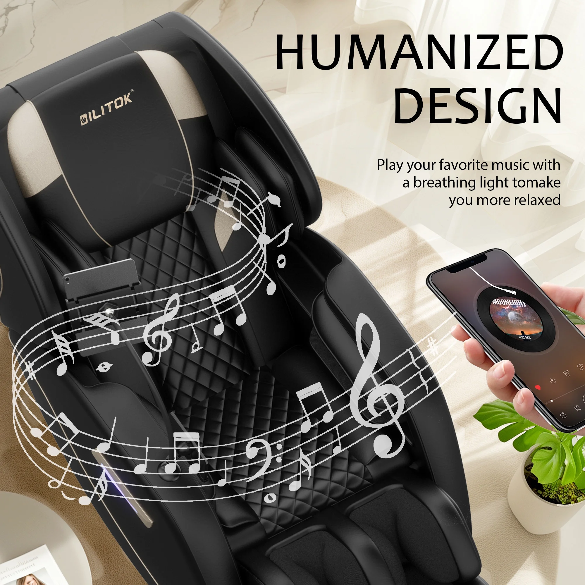Full-Body Massage Experience – Six fixed rollers target the neck, back, waist, and feet with five preset automatic modes (F1-F5), allowing for personalized relaxation. Powerful airbags provide a full-body air compression massage with three intensity levels, relieving muscle tension. Foot and Leg Relaxation – The chair offers roller kneading for foot acupuncture points and a heated calf section that promotes blood flow and reduces muscle strain, providing effective lower body relaxation. Zero Gravity Mode for Deep Relaxation – With the press of a button, the chair reclines to a zero-gravity position, elevating your feet above your heart to relieve pressure, stimulate circulation, and enhance the massage experience. Convenient and Stylish Design – Equipped with bottom rollers for easy mobility, integrated Bluetooth audio for music enjoyment, calming blue ambient lights, and a phone holder, the chair is designed to enhance convenience and relaxation. It supports users up to 180 lbs and 6 feet tall. Thoughtful Gift for Wellness – A perfect gift for yourself or a loved one, this massage chair promotes physical well-being, offering comfort, relaxation, and muscle relief in daily life, making it a meaningful gesture of care.