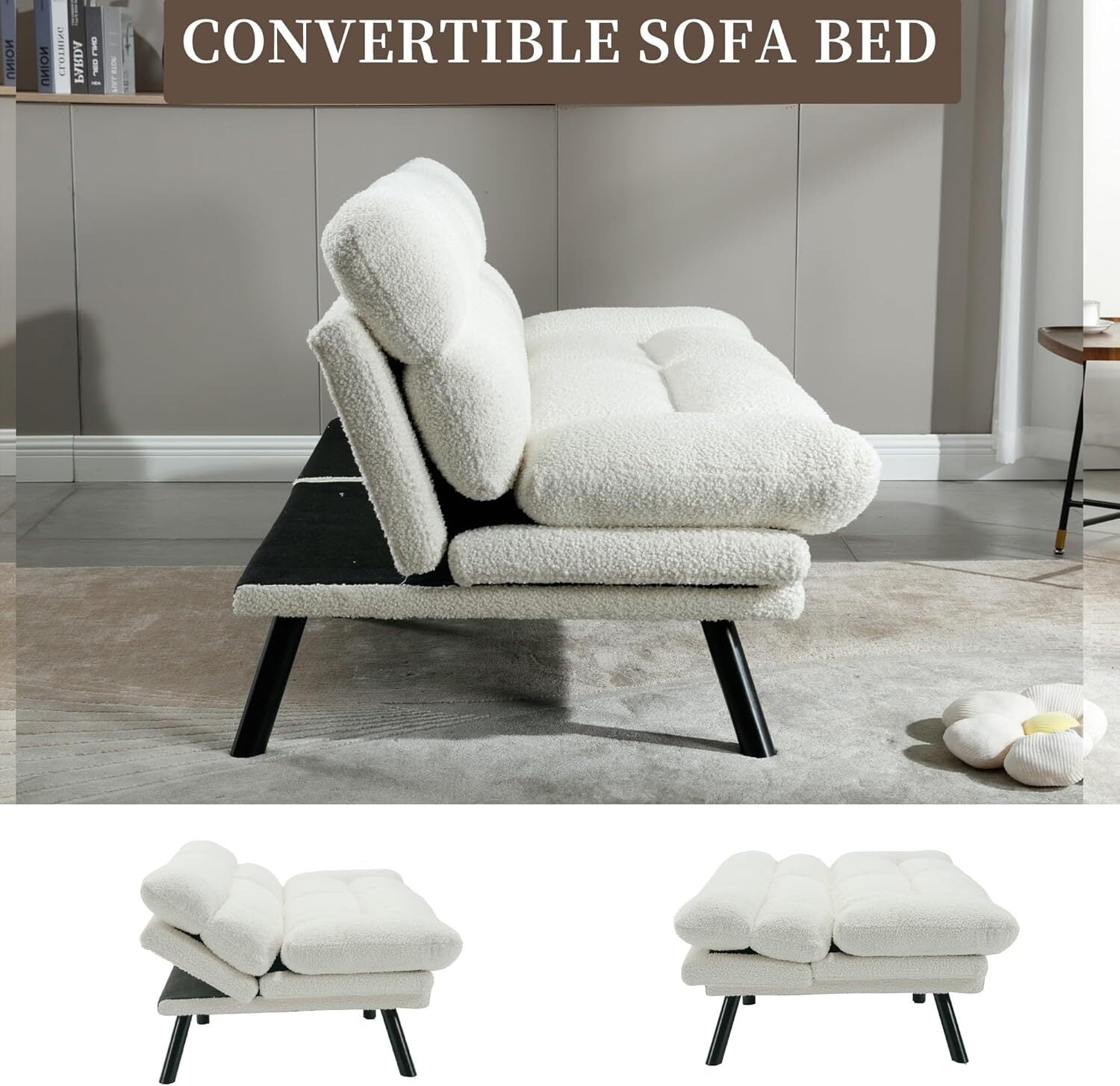 The AENKYO Futon Loveseat Sofa Bed combines versatile functionality with modern comfort, designed to transform small living spaces. This 2-in-1 convertible sofa features an adjustable backrest that effortlessly converts from a stylish loveseat to a comfortable sleeper bed, perfect for apartments and compact living rooms. Engineered with high-density foam cushions and a sturdy metal frame, this space-saving futon delivers exceptional support for daily use. The removable covers allow easy maintenance while the foldable design enables quick configuration changes. As a dual-purpose futon loveseat, it solves the challenge of limited space without compromising style – the clean lines and contemporary silhouette blend seamlessly with modern decor. The 2-seater design features reinforced stitching and durable construction, supporting up to 600lbs weight capacity. Perfect as a guest bed or everyday sofa, this convertible loveseat sofa bed comes with tool-free assembly and includes all necessary hardware.