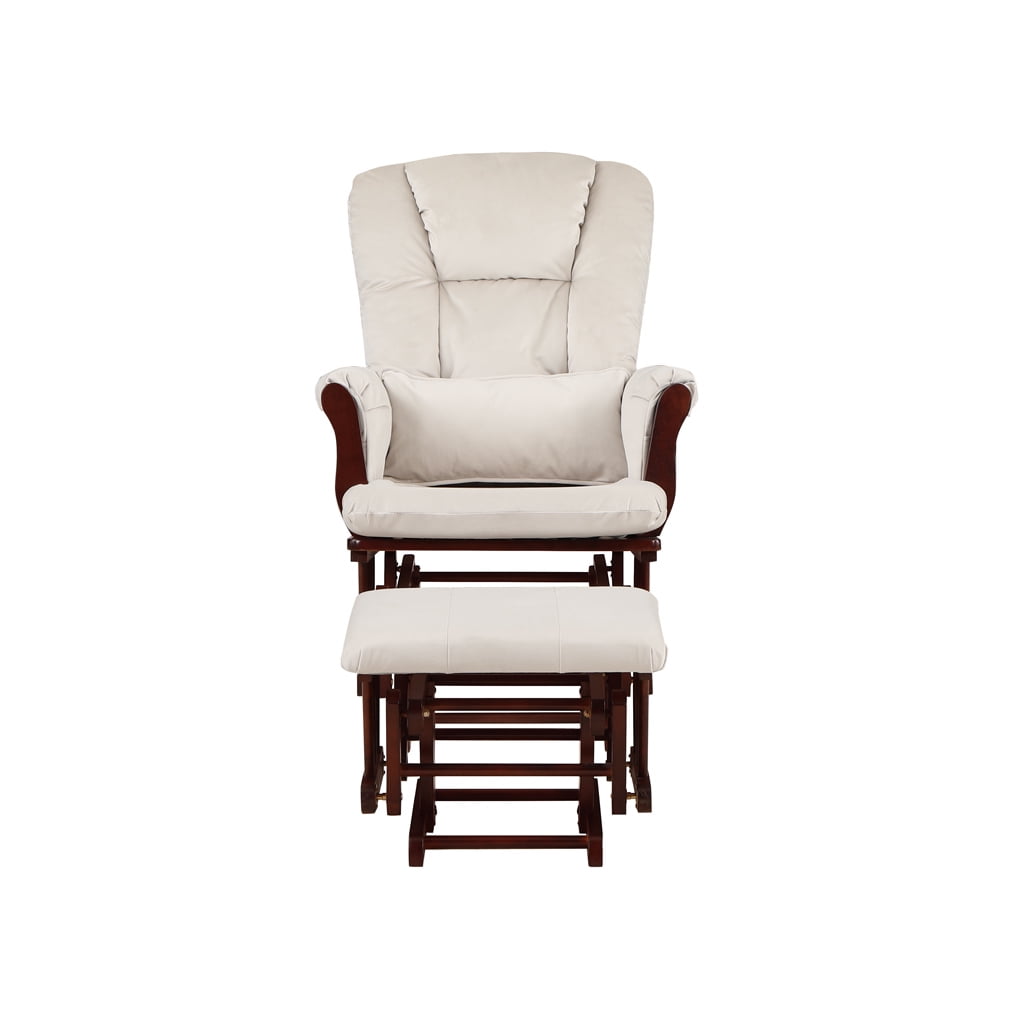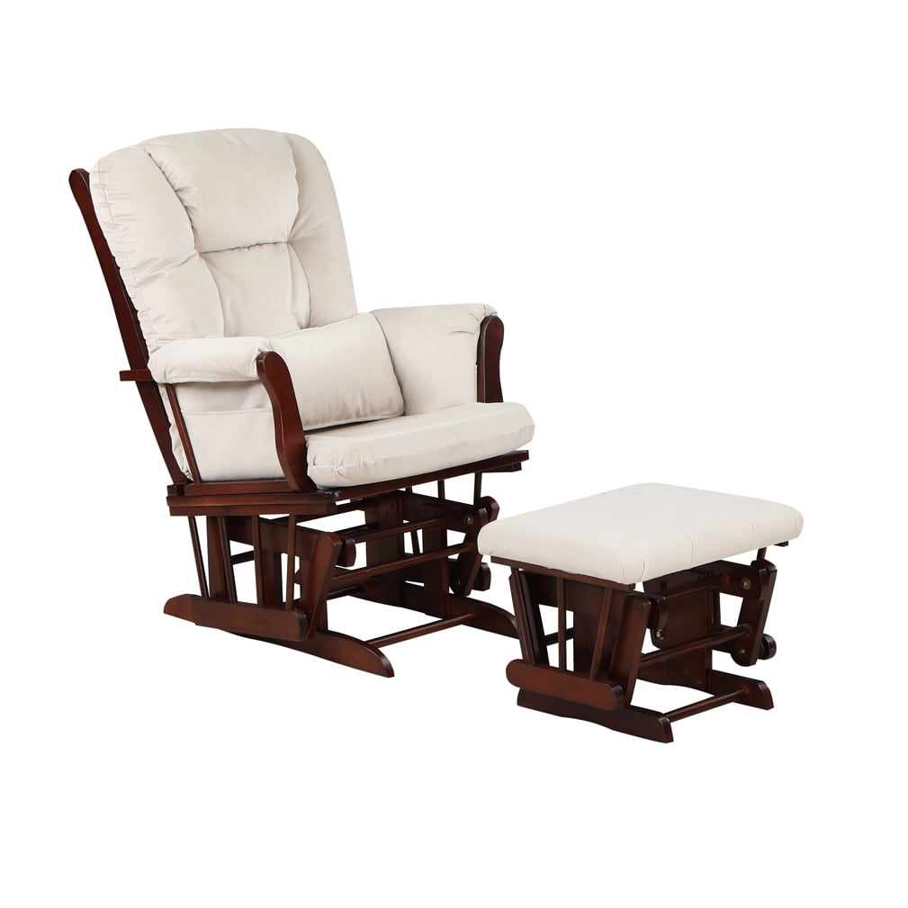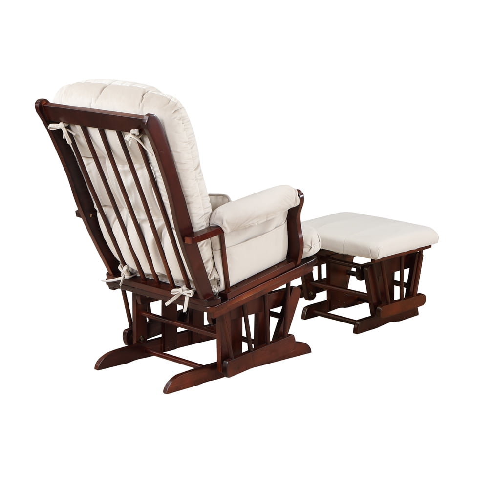 AFG Alice Glider and Ottoman with Pillow, Espresso Finish with Beige Cushions