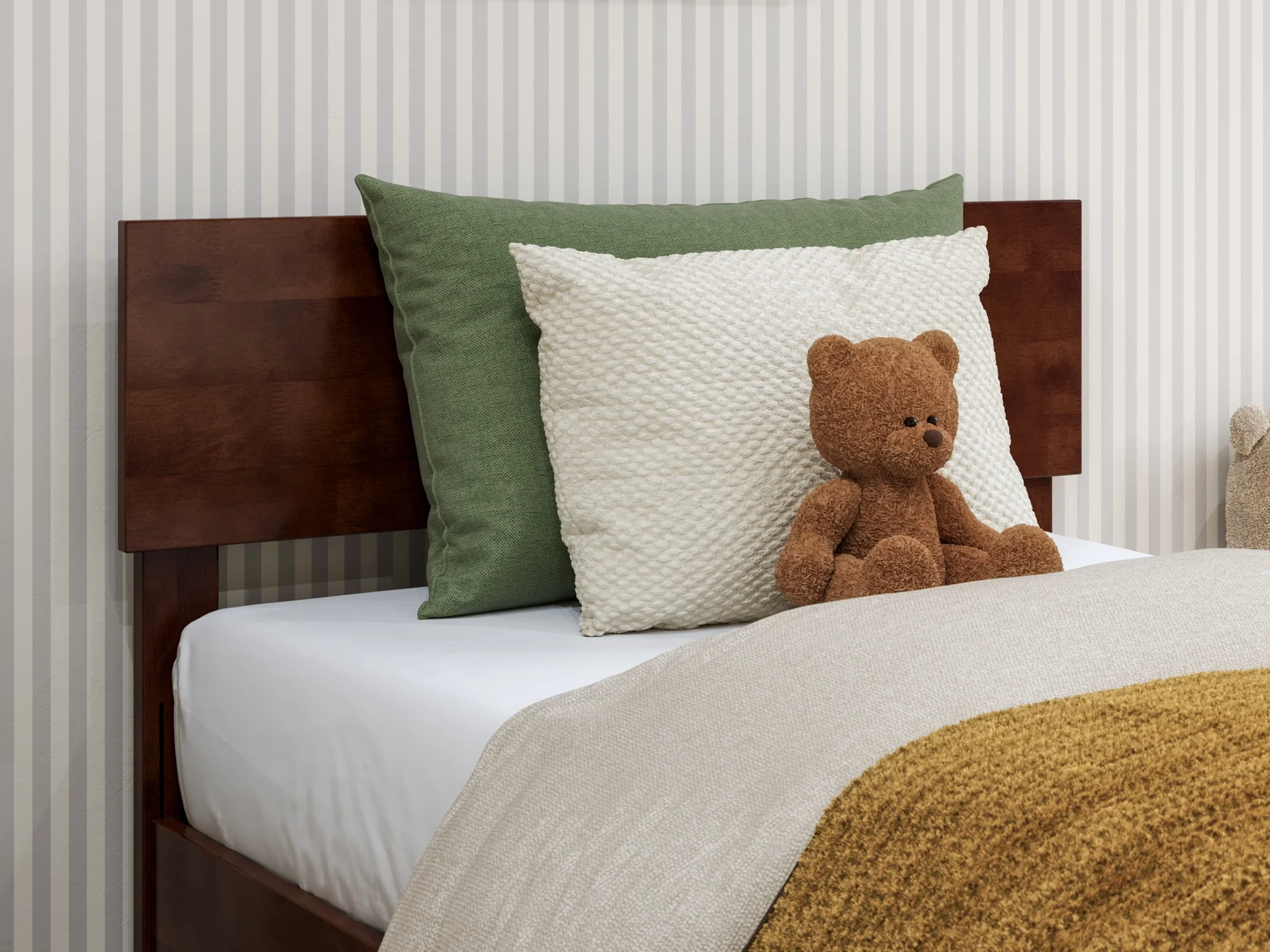 AFI Aria Twin Modern Solid Wood Low Profile Platform Bed, Walnut