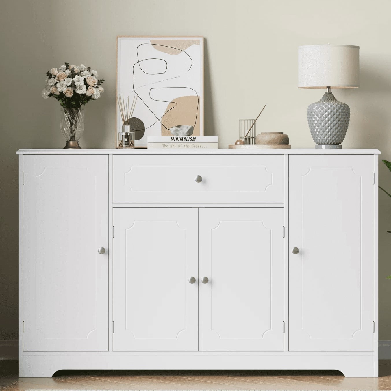 AFI Madison King Low Profile Wood Platform Bed Frame with Panel Headboard, White