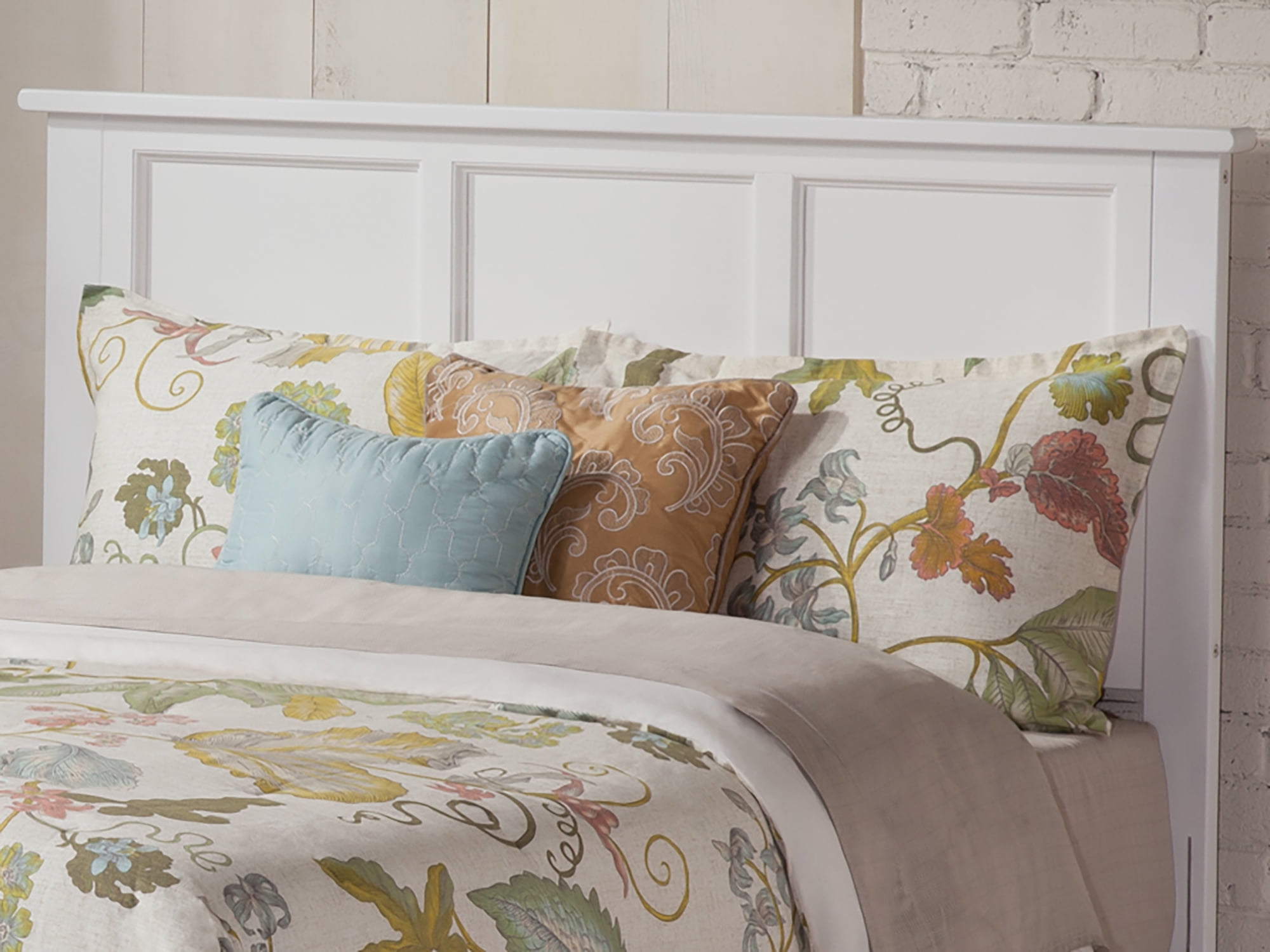 AFI Madison Queen Wood Platform Bed with Panel Headboard and Footboard in White Traditional Headboard That Will Last A Lifetime: Sturdy, Solid wood and veneer construction features a simple, traditional panel design that will complement any room. No Box Spring Needed: Designed for lasting durability, our slat kit supports your mattress to increase airflow for a more comfortable, cooler sleep. Designed for 10″-14″ mattresses to complement the sleek, low-profile frame while maximizing comfort and style. USB Charging Station: Includes Surface Mount Turbo Charger, 6-foot cord, ETL listed, 18GA wire, 2 USB Ports .5V/3.5A Assembled Dimensions: L:83.46″ x W:63.7″ x H:50″ Weight Capacity: 800 lbs