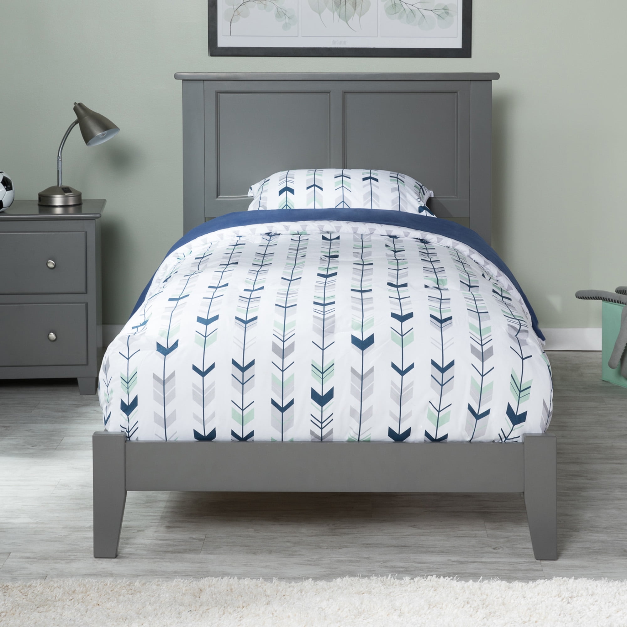 AFI Madison Twin Solid Wood Foundation Bed with Panel Headboard, Grey Traditional Headboard That Will Last A Lifetime: Sturdy, Solid Wood Construction features simple, traditional panel design that will complement any room. Features Solid Hardwood and Veneers with a clean Finish BOX SPRING REQUIRED: Designed for lasting durability, this bed arrives with bed slats to support your foundation, offering you a better, more comfortable sleep. Charging Station: Includes Surface Mount Turbo Charger, 6-foot cord, ETL listed, 18GA wire, 2 USB Ports .5V/3.5A Assembled Dimensions: 77.24″ (L) x 42.76″ (W) x 41.34″ (H) Weight Capacity: 600 lbs