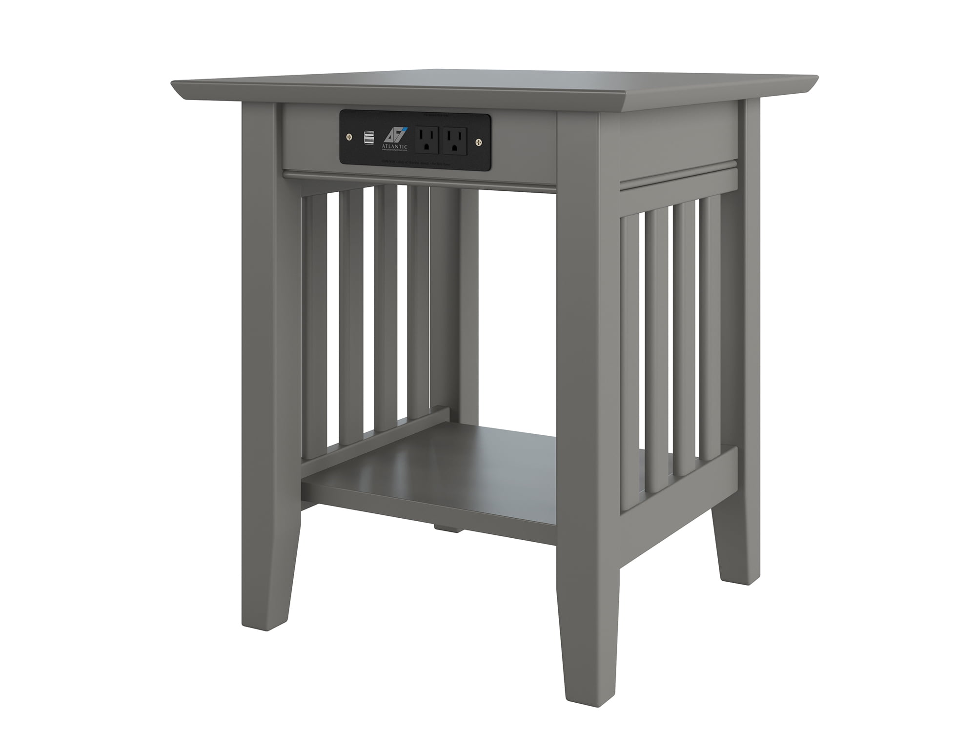 AFI Mission Solid Wood End Table with Built-In Charging Station, Grey
