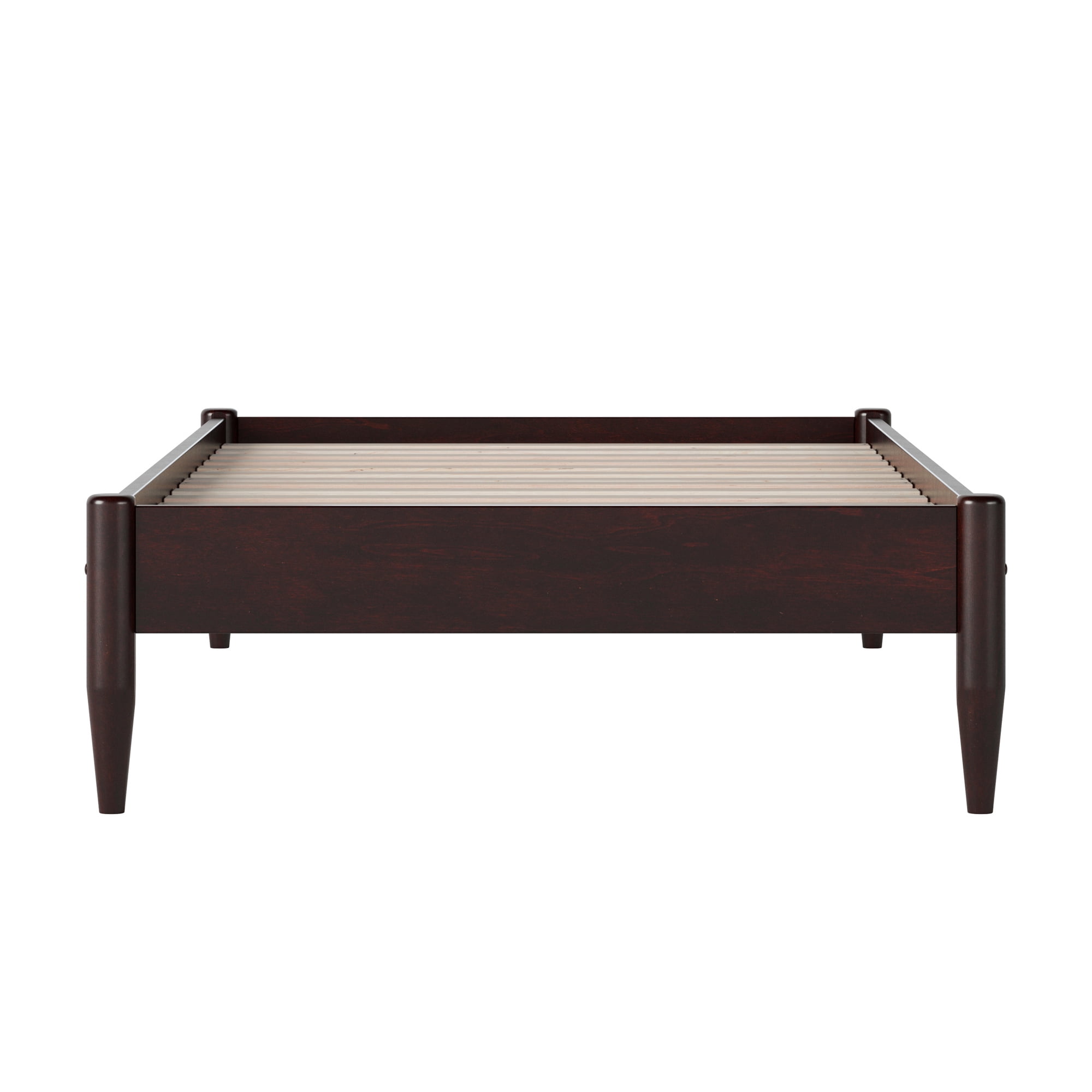 Crafted from solid wood with a mid-century modern touch, the Pasadena Low Profile Platform offers lasting support and timeless appeal. Available in Espresso, White, Walnut, and Light Toffee to suit any space. With multiple size options: Twin XL, Twin, Full, Queen, and King, you can find the perfect fit for any room in your home. Crafted with wood slats, the bed does not require a box spring to support your mattress. Standing at a height of 12 inches, this bed offers ample room underneath for discreet and convenient storage. With a durable design and easy assembly, the Pasadena Low Profile Platform is the perfect addition to your cozy contemporary bedroom.