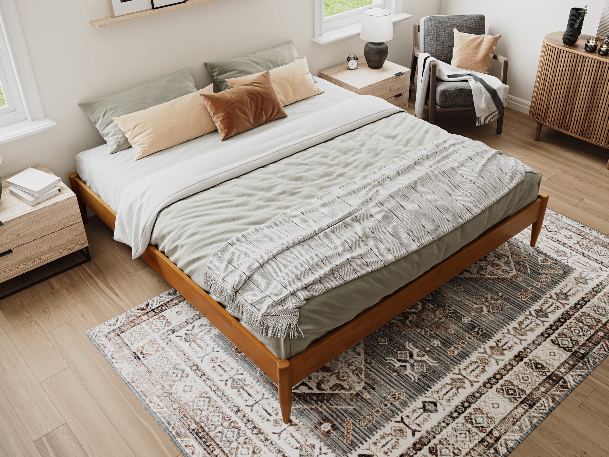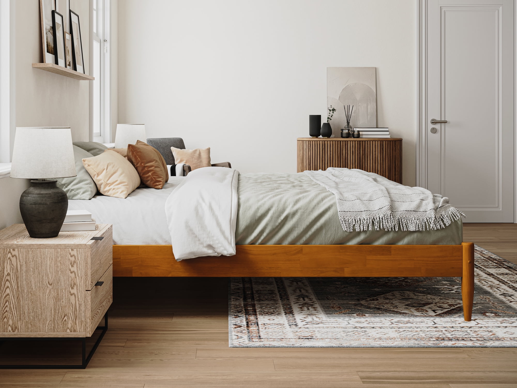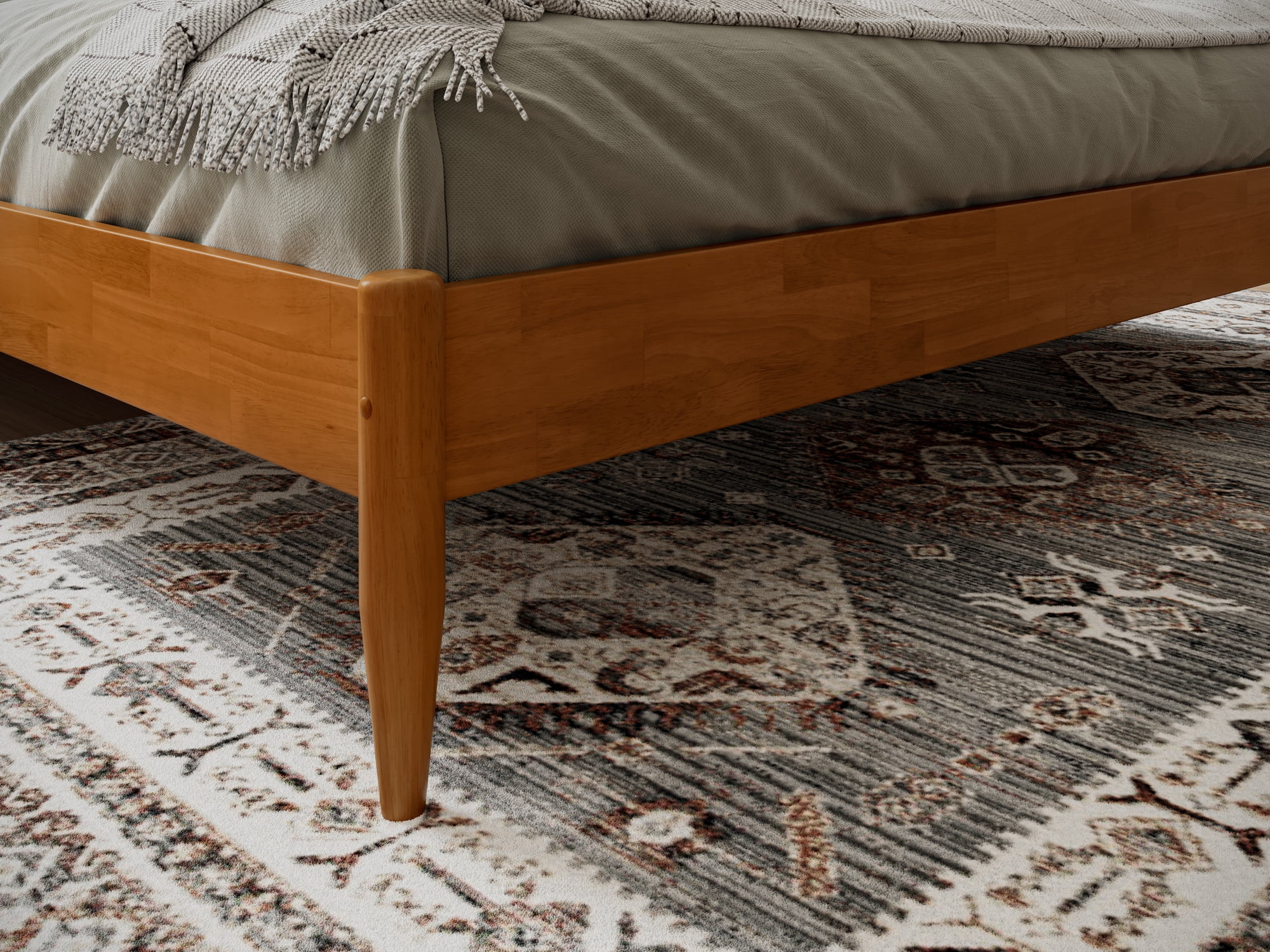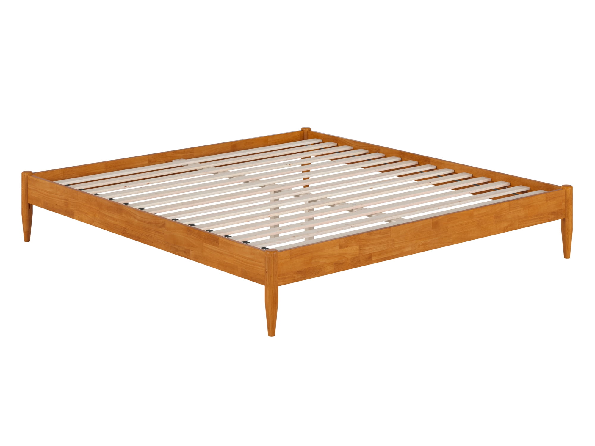 AFI Pasadena 12″ King Platform Bed Frame in Light Toffee No Box Spring Needed – Reliable and evenly spaced wood slats are designed to support and extend the life of your mattress without the need for a box spring Durable Design: Sturdy frame is constructed with Solid Hardwood and a Non-Toxic Finish for longevity Ample Underbed Storage: Provides ample space beneath the bed, perfect for storing your odds and ends. Recommended Mattress Height: 8-13 inches Easy-to-Assemble: All parts, tools, and instructions conveniently arrive in 1 box Mattress not included Assembled Dimensions: L:84.4″ x W:79.76″ x H:12.44″ Weight Capacity: 800 lbs