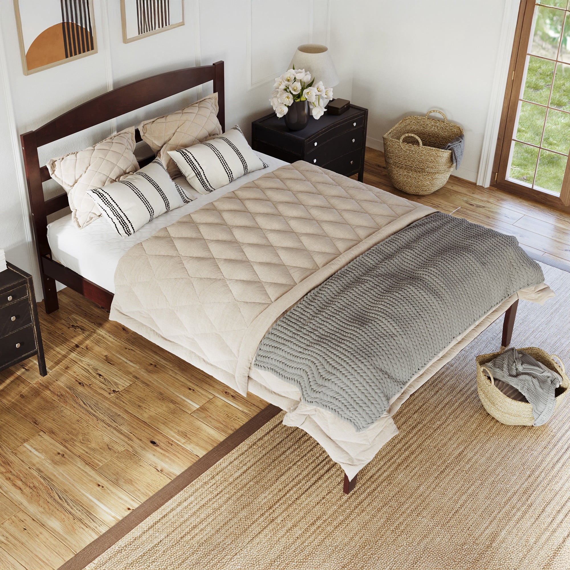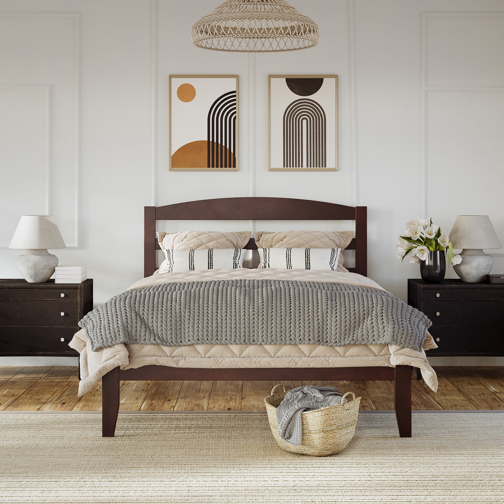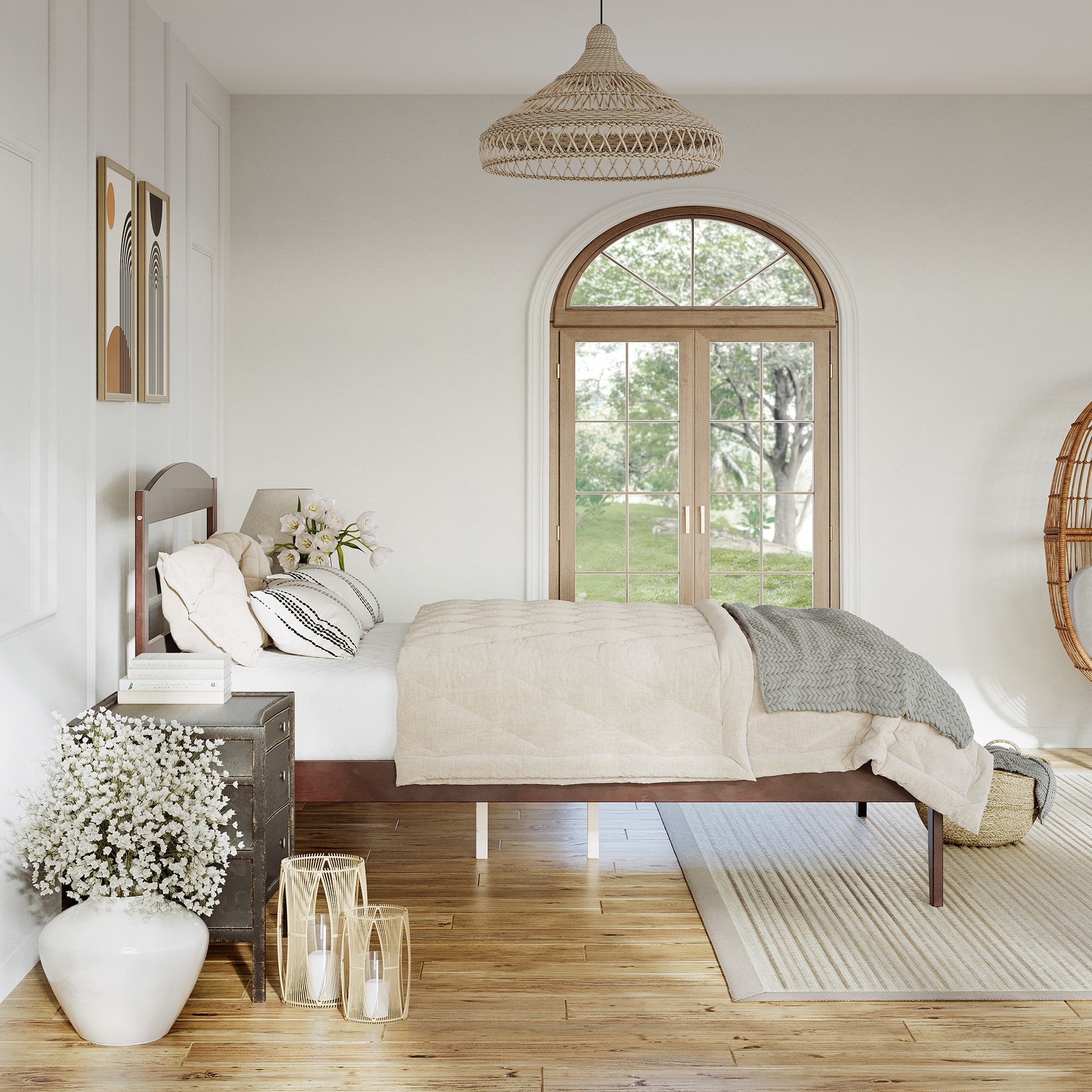 AFI Warren 14″ Full Wood Platform Bed Frame with Slatted Headboard in Walnut Minimalist Mission Inspired Design: Sturdy, Solid Wood Construction features simple, mission inspired design that will complement any room. Arched horizontal slat Headboard and bed frame feature solid hardwood and veneer construction with a non-toxic finish for lasting durability No Box Spring Needed: Designed for lasting durability, our slat kit supports your mattress to increase air flow for a more comfortable, cooler sleep Charging Station: Includes Surface Mount Turbo Charger, 6-foot cord, ETL listed, 18GA wire,2 USB Ports .5V/3.5A Assembled Dimensions: 76″L x 53.38″W x 41.38″H Weight Capacity: 800lbs