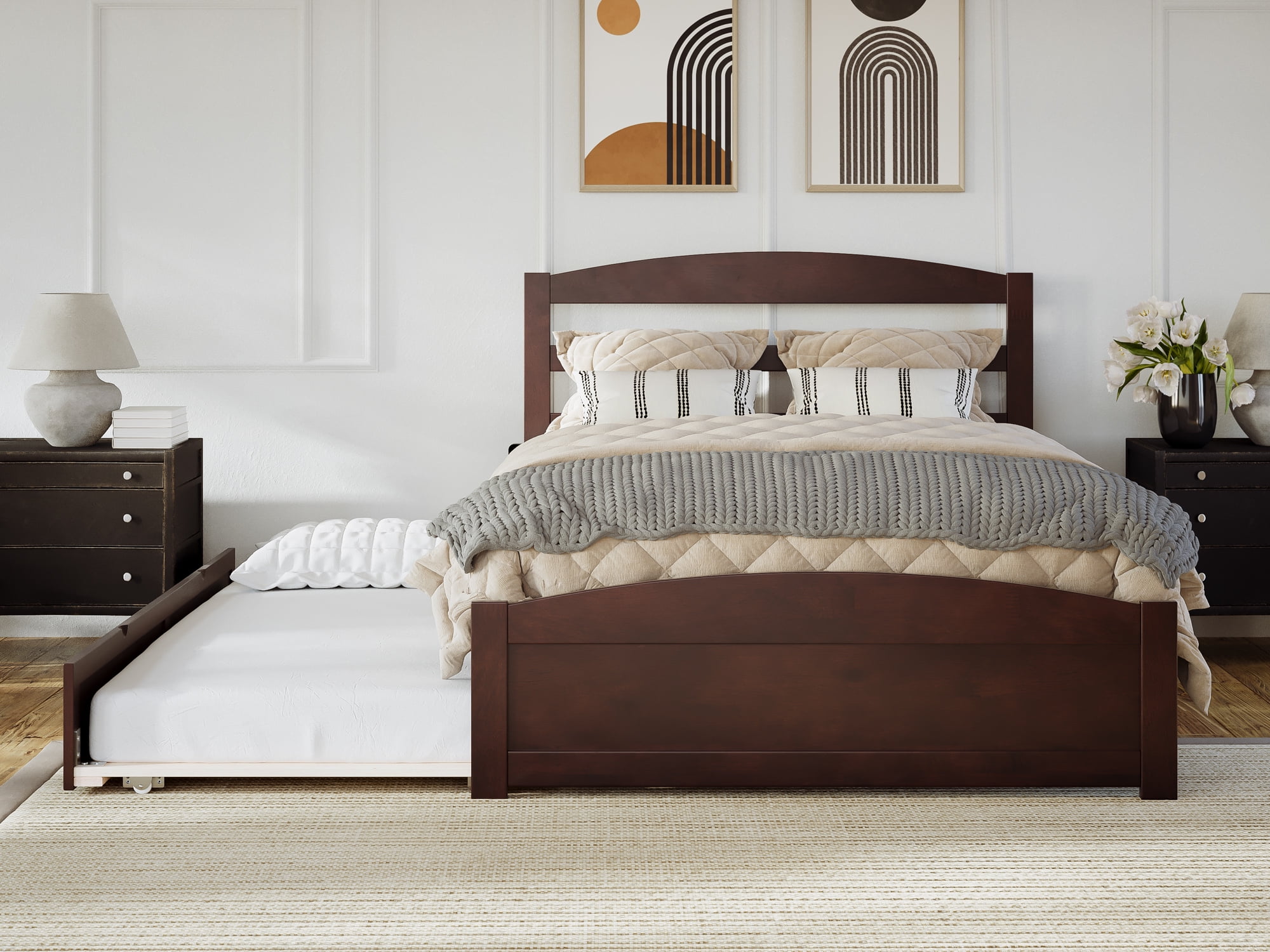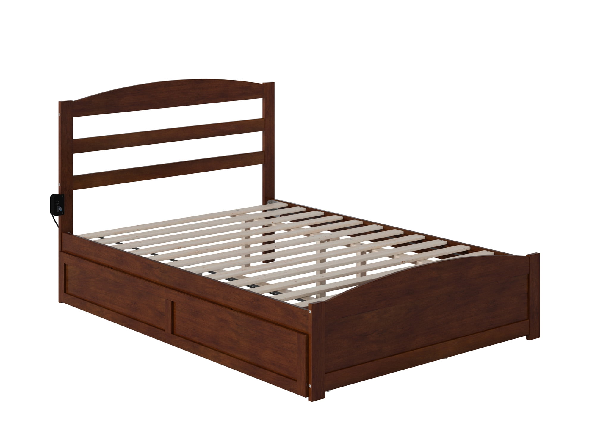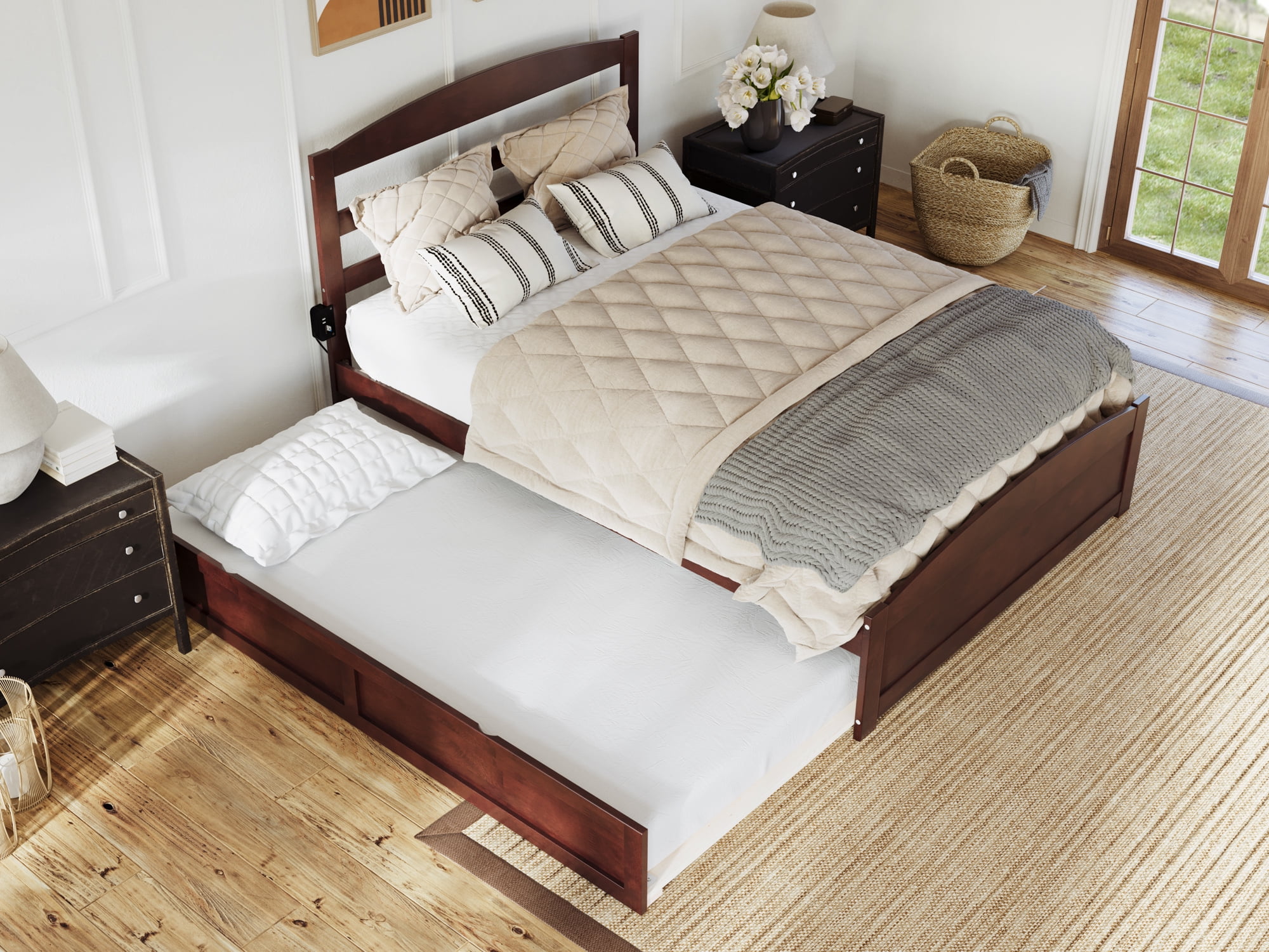AFI Warren Full Wood Platform Bed with Headboard Footboard & Twin Trundle, Walnut