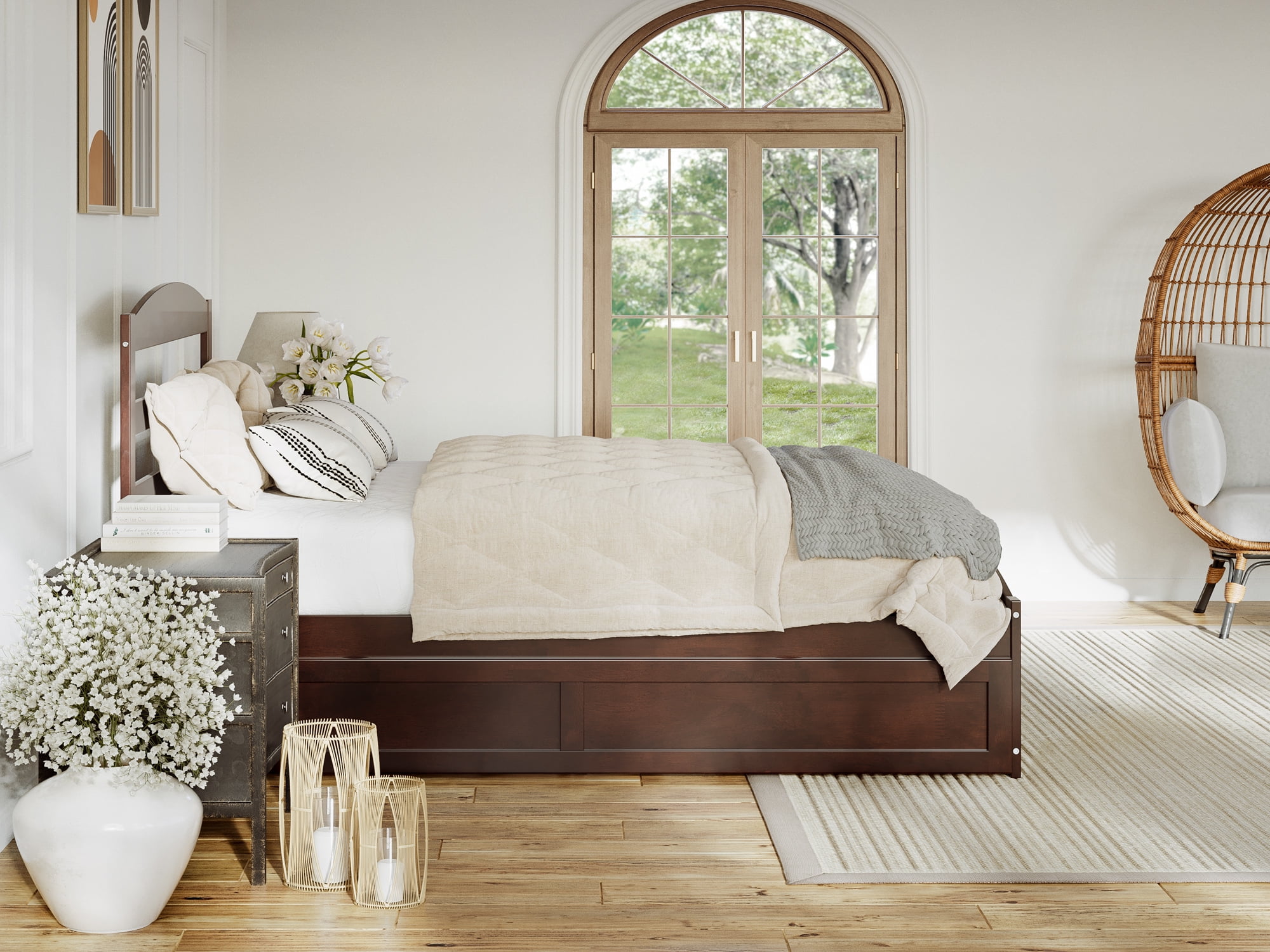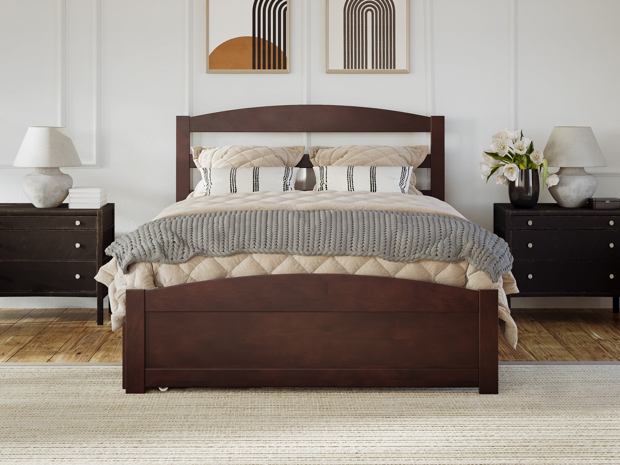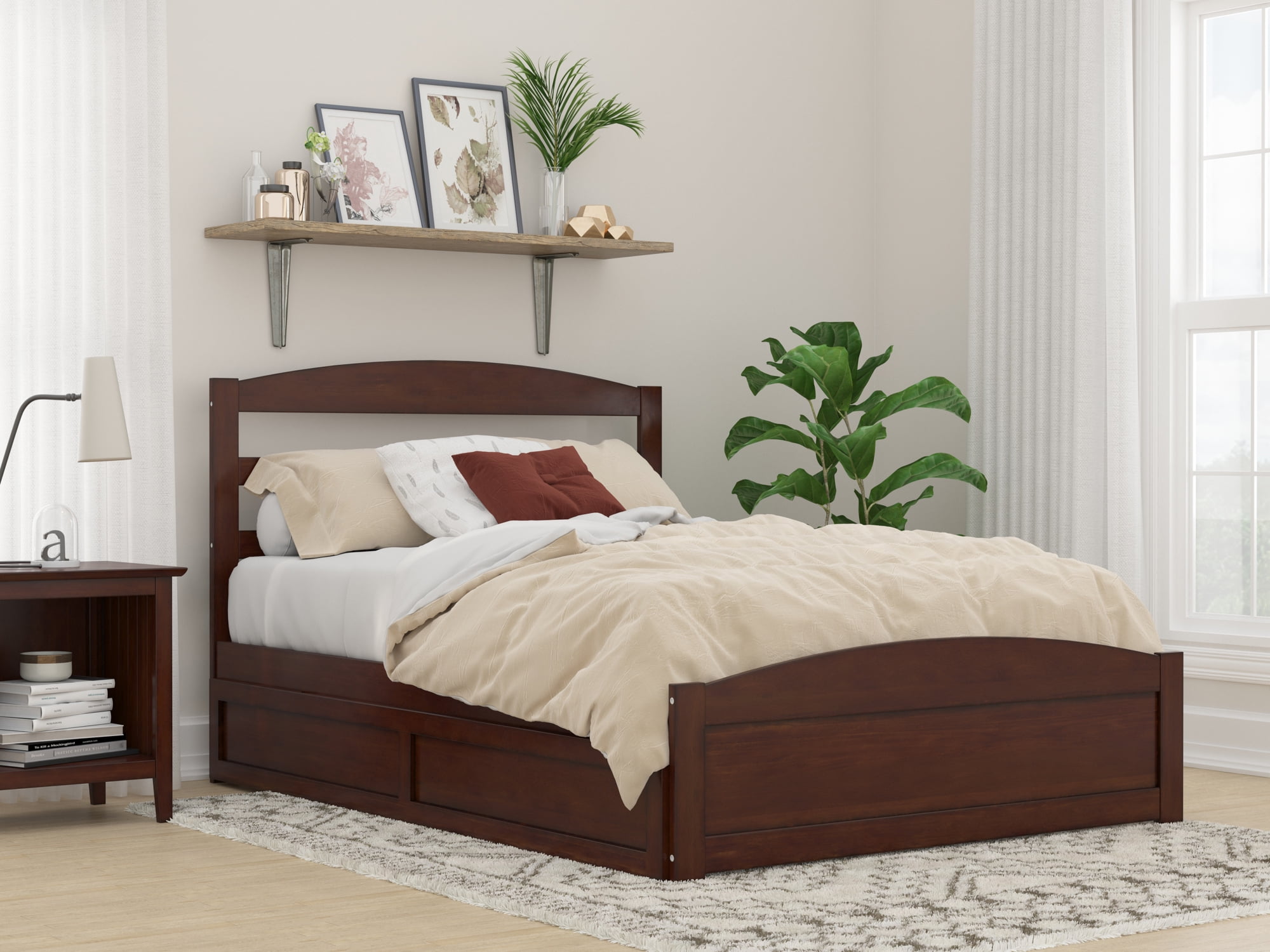 AFI Warren Full Wood Platform Bed with Headboard Footboard & Twin Trundle, Walnut