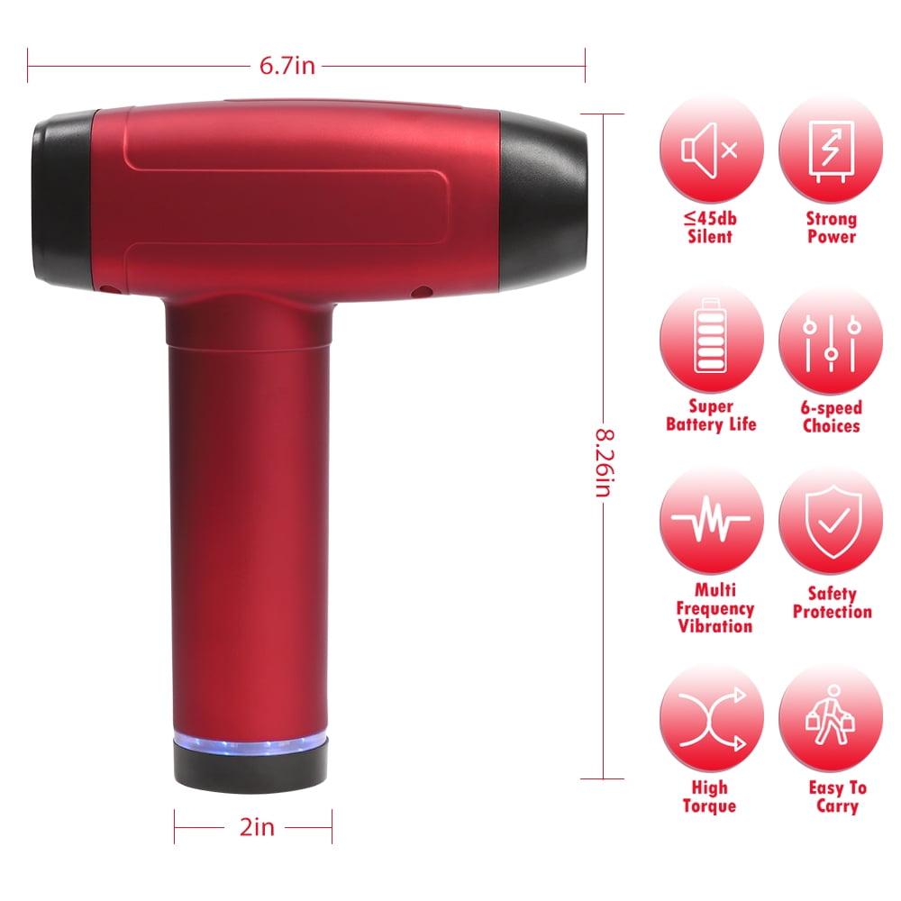 After Gym Ergonomic Massage Gun for Muscle Relief, 6 Speeds, Includes 4 Applicators, Fire Red