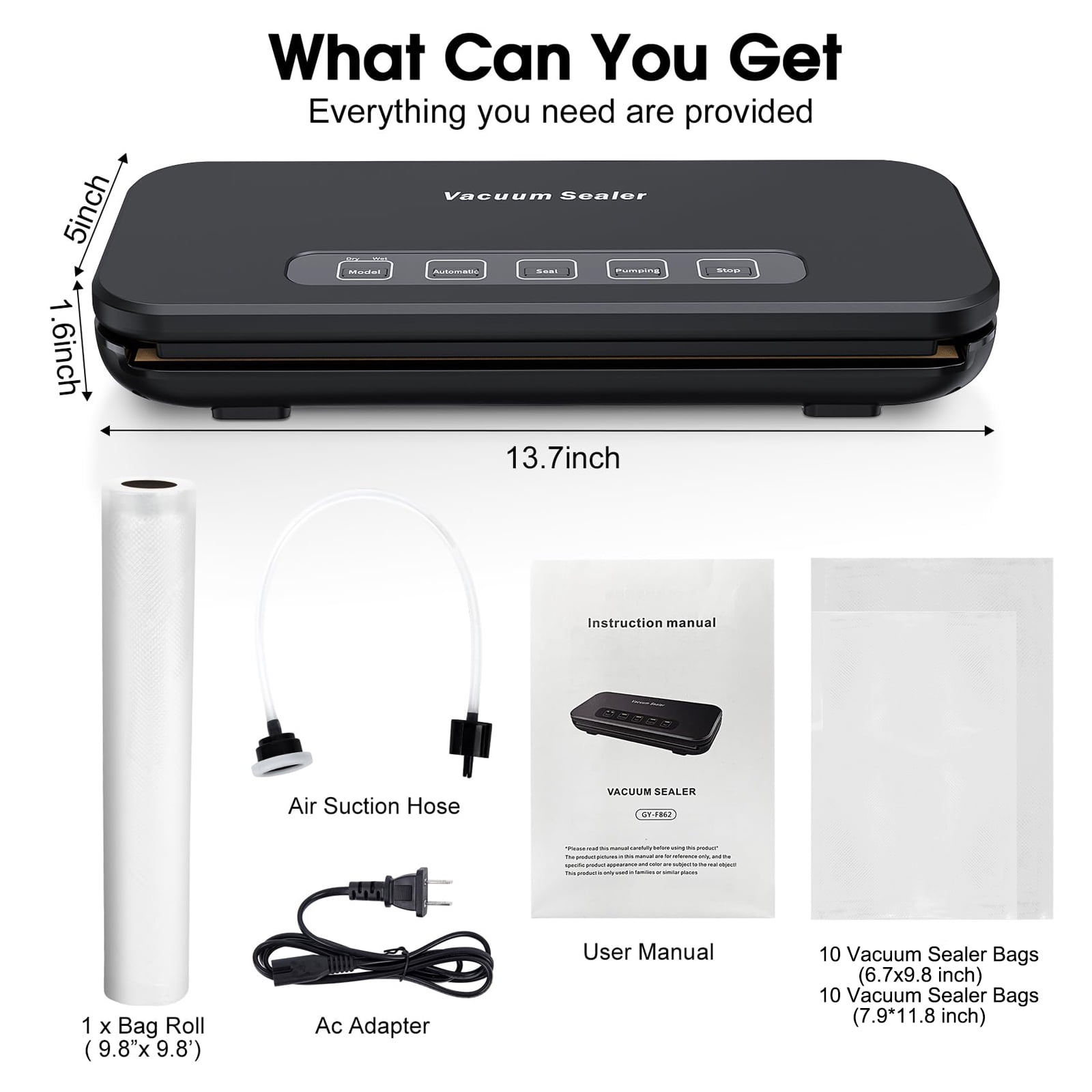 Prevent freezer burn with AGCAN reliable vacuum sealers Powerful 85Kpa suction for lasting freshness with vacuum sealers Five functions for spot pumping and sealing with the food sealer 28cm sealing strip for large bags with the vacuum sealer machine Built-in cutter to customize bags for your vacuum food sealer machine Keep food fresh 10x longer with food vacuum sealers Easy cleanup and user-friendly design with the vacuum sealer machine Perfect for meal prep and bulk storage with food sealer vacuum sealers 20-bag starter pack included with vacuum sealers for food Preserve fresh ingredients with food vacuum sealer machines