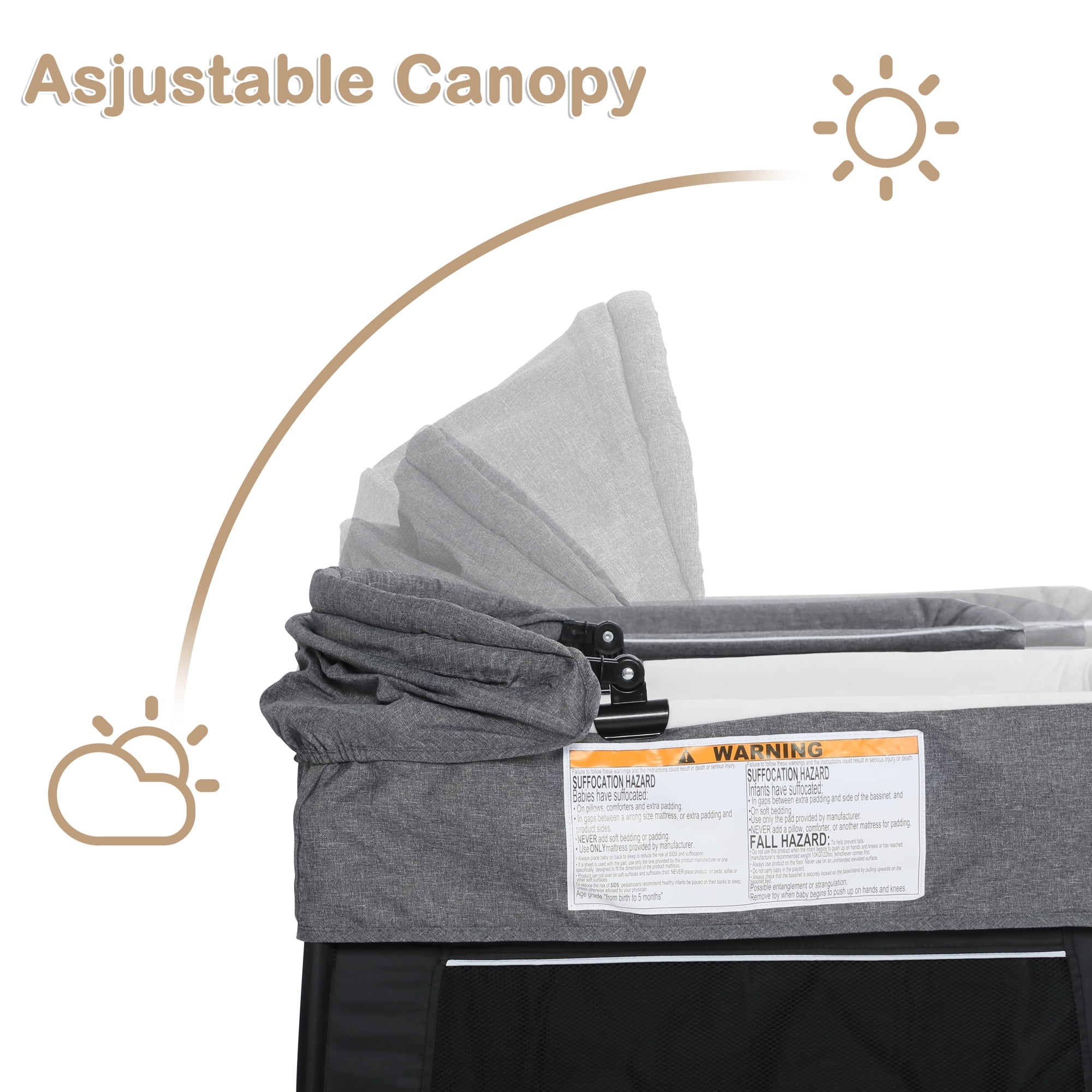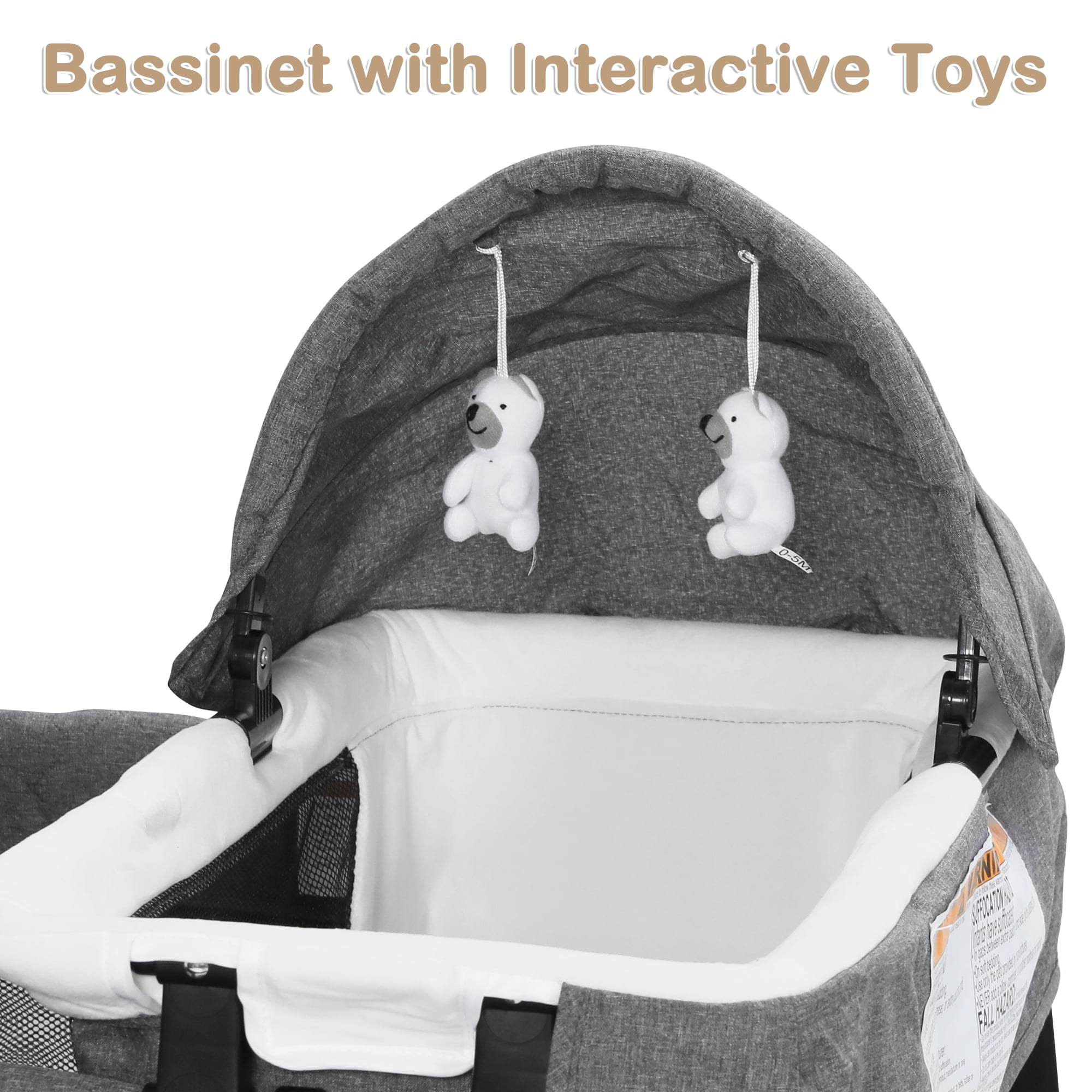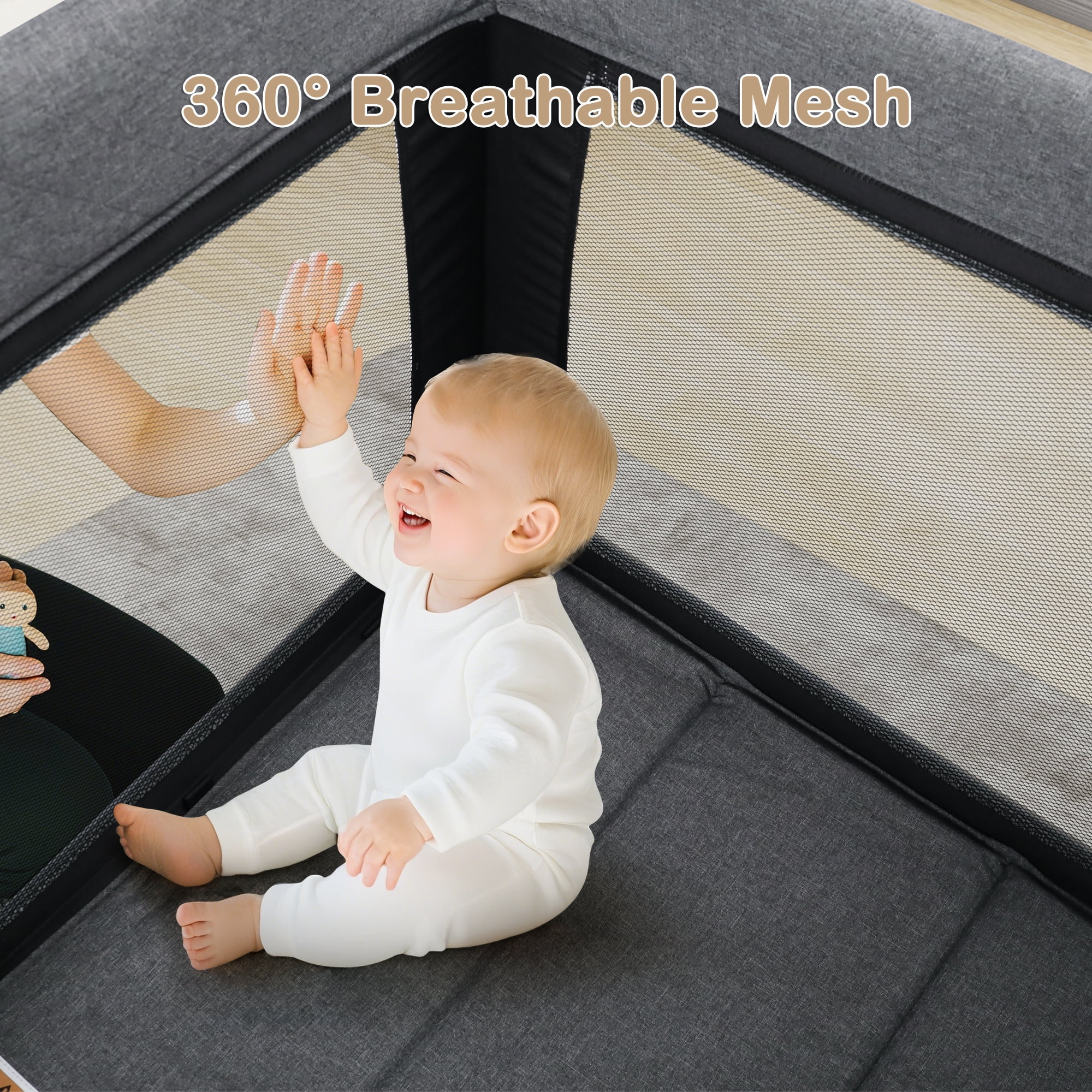 Newborn bassinet with hanging toys for comfortable sleep anywhere Baby playard mode for climbing and walking for toddlers Changing table for easy diaper changes without bending over The sleeping surface incline angle at 7° and are under the ten degree cut off AILEEKISS portable nursery center complies with bassinet standard requirements Removable and foldable mattress for easy cleaning Crash-proof corners to prevent accidental collisions No tools required for quick set-up and breakdown Quick and compact folding for easy carrying everywhere Includes carry bag for family travel or visiting friends Smooth and quiet wheels that won’t damage the floor Diaper organizer for storing baby’s daily necess