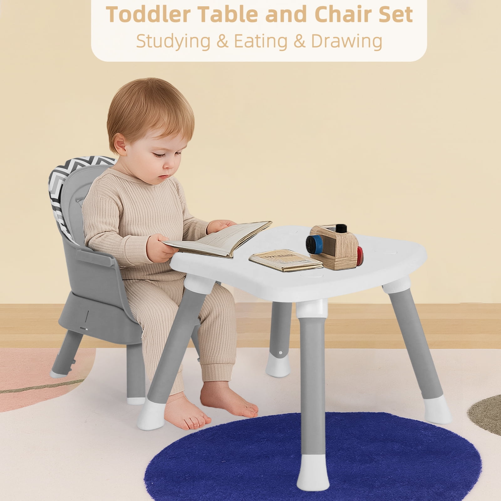 Our all-in-one highchair can be easily converted into various modes: traditional high chair, baby booster seat, kids study table & chair, building block table, kids stool and more. AILEEKISS versatile highchair will meet your various needs and grow up with your baby. This baby feeding chair come with an adjustable 5-point harness, which can prevent babies from falling off the chair. The sturdy pyramid structure with 4 anti-slip foot pads add additional security as well as protect the floor from scratches. Also, the high backrest and double cushion seat is breathable for extra comfort. Take the lower legs then fix to the chair with the included seat strap, you will get a baby booster seat! Allow your baby to sit higher to join the party or enjoy food with parents in the restaurant. In addition, the booster seat can be converted to a kids single stool. Thanks to the self-locking design, you can install this baby dining chair easily and quickly without tools. Morever, The removable tray with 3 positions adjust is made of high quality PP meterials, which is safe and easy to clean. Additionl safety baffle under the tray can effectively prevent babies from slipping from the chair. Recommended weight capacity: 55 lbs. This 8 in 1 toddler high chair is great versatile and can meet the series of needs of children aged 6 to 36 months. Various conversion modes are very convenient and fast, which is a perfect gift for holiday, Christmas, Children’s Day.
