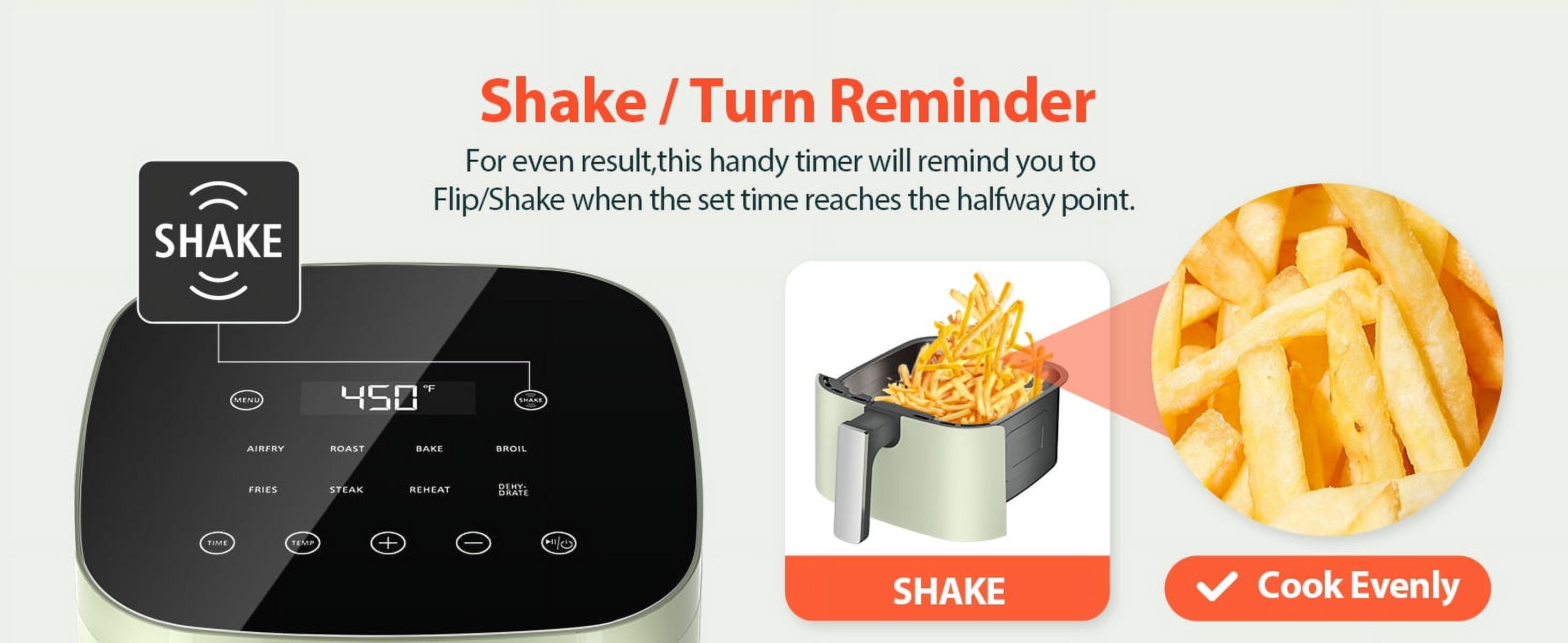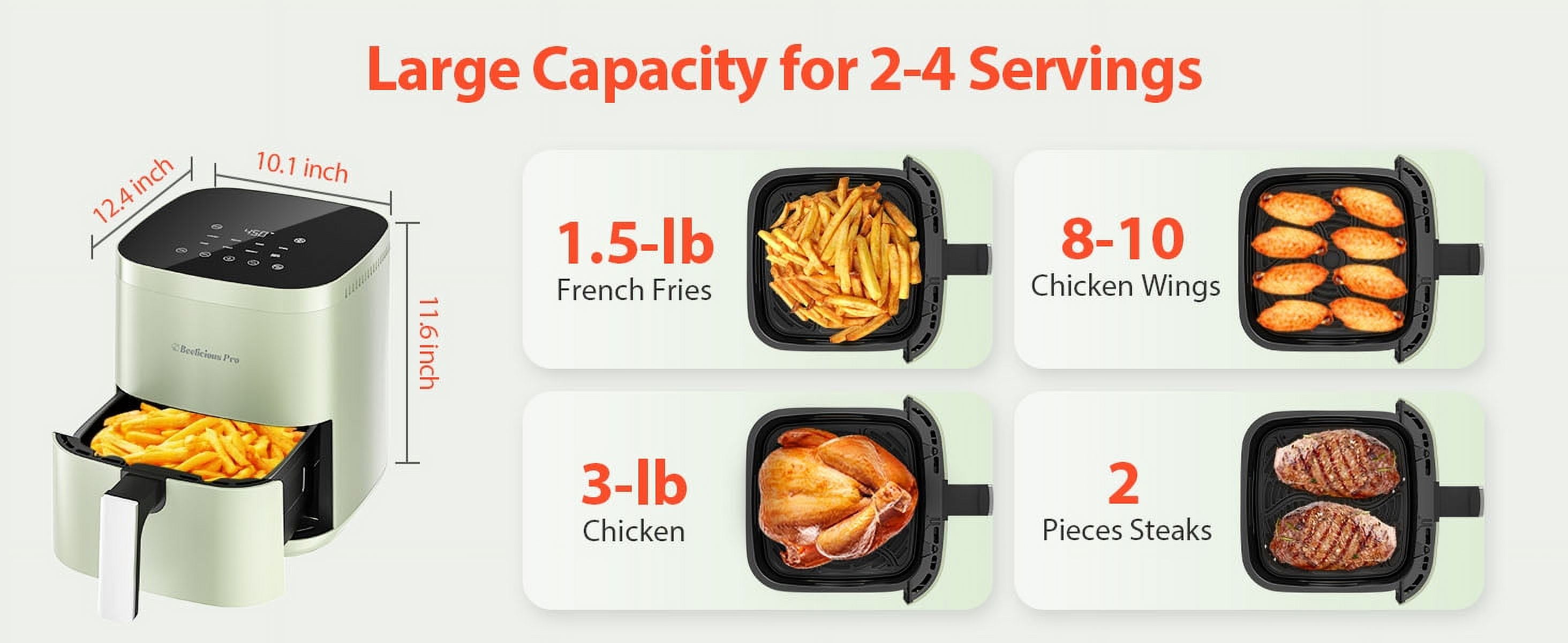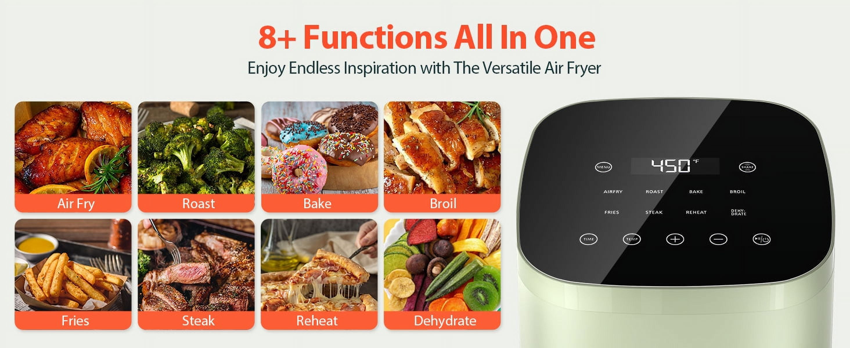 Air Fryer, Aeitto 8-in-1 Smart Compact 4QT Air Fryers, Shake Reminder,450°F Digital Airfryer with Flavor-Lock Tech,Tempered Glass Display, Dishwasher-Safe & Nonstick,Fit for 1-3 People, Green