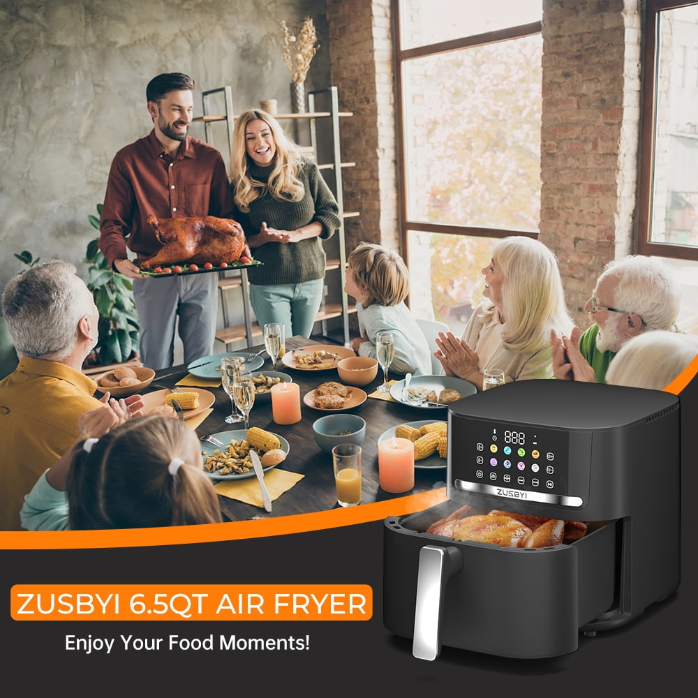 Air Fryer, ZUSBYI 6.5QT Air Fryer Oven With Smart Coloful Screen, 10 in 1 Customizable Functions, 1-Touch Digital Display Large Air fryer, Shake Reminder, Up to 450°F, Nonstick Dishwasher-Safe Basket