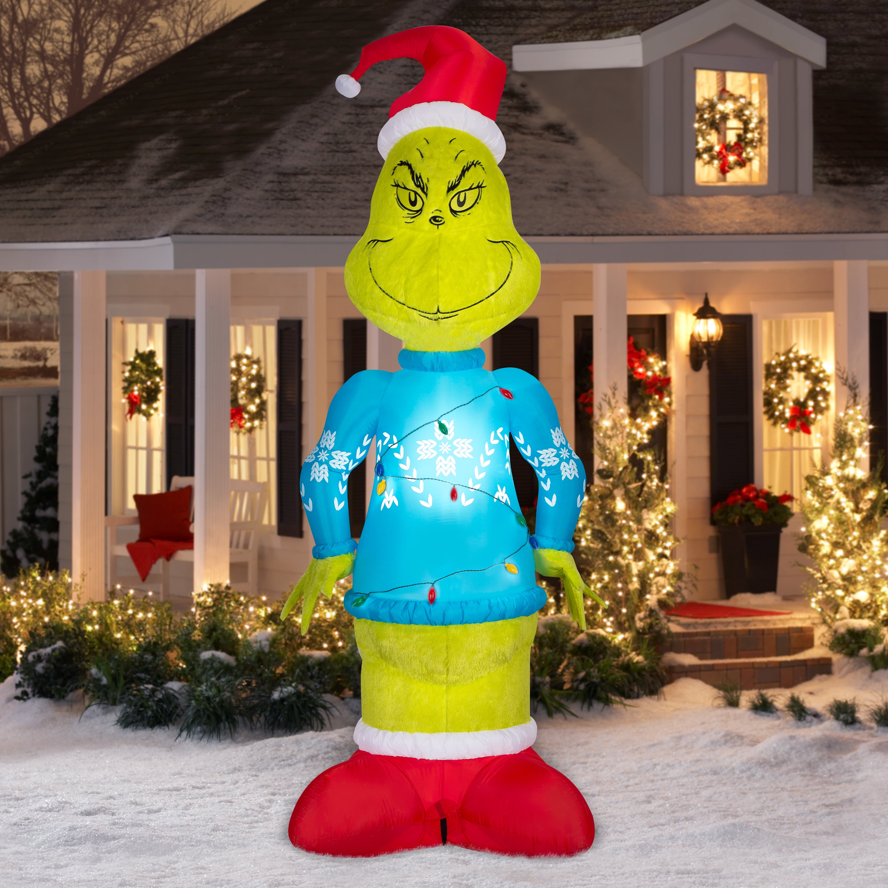 Airblown Inflatables Christmas Fuzzy Plush Grinch in Blue Sweater with Light String Giant Dr. Seuss