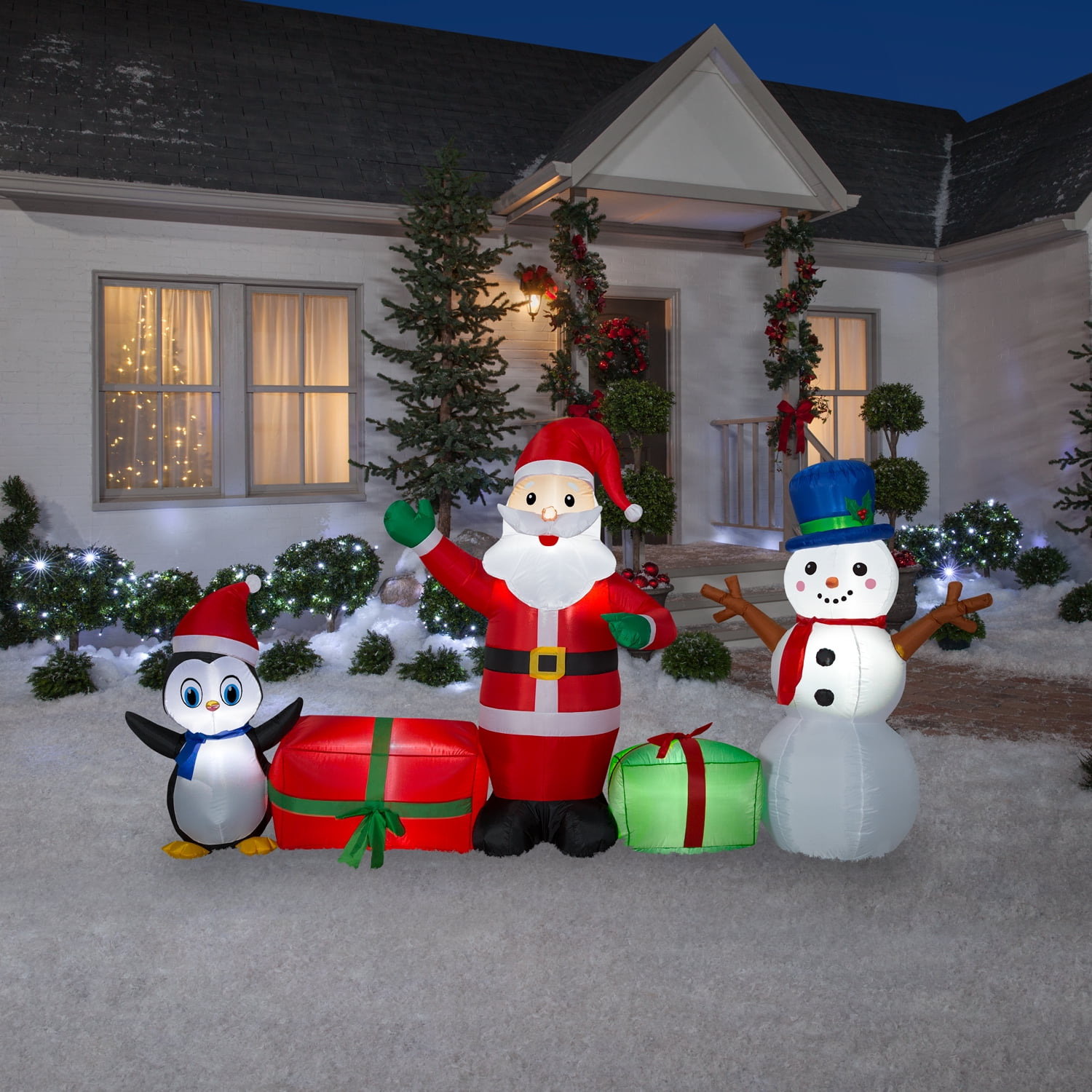 Airblown Inflatables Santa Scene With Snowman And Penguin
