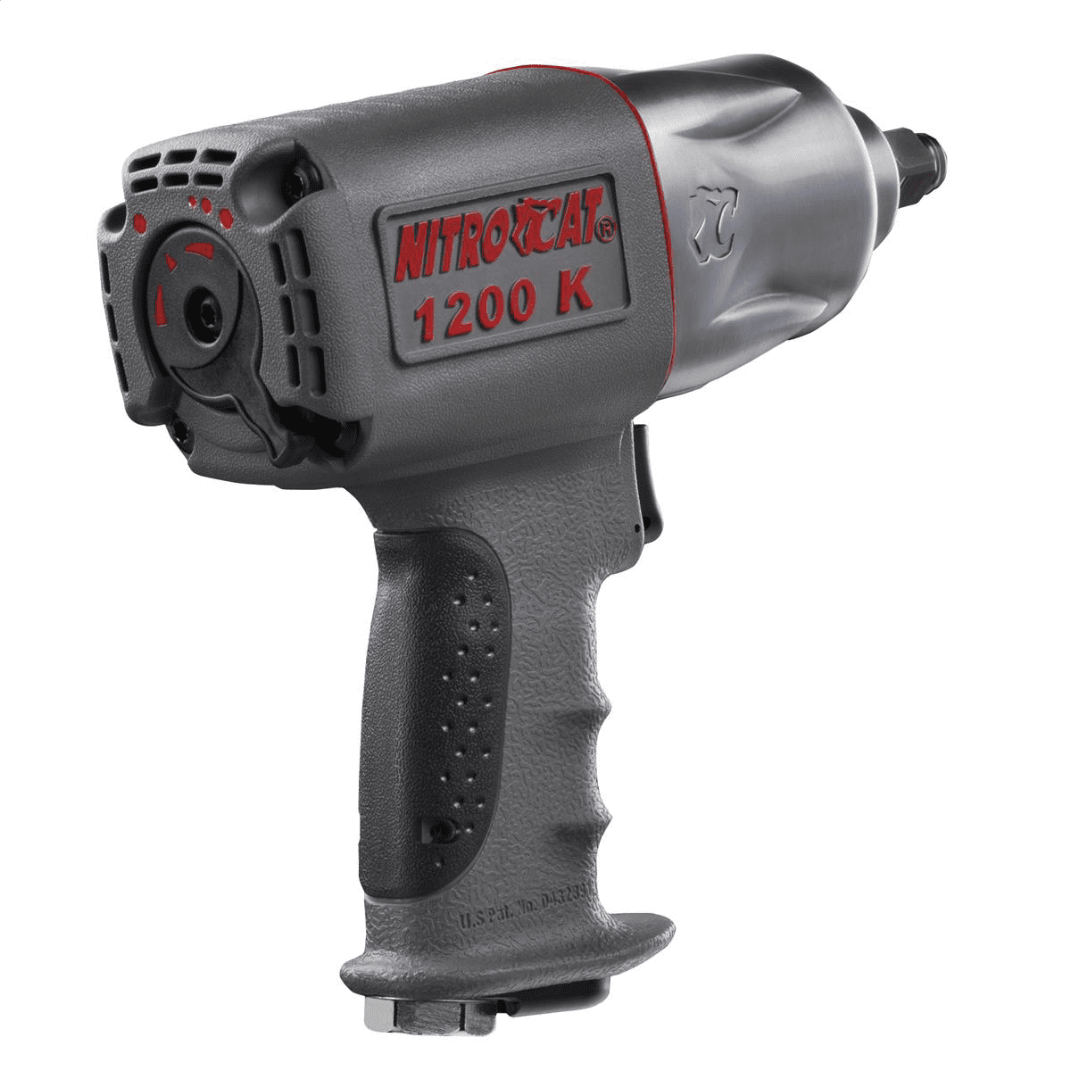 It’s time to modernize your toolkit. The AIRCAT 1200-K 1/2-inch Nitrocat Composite twin-clutch Impact Wrench has 1295 foot-pounds of torque, and the reinforced composite body outperforms anything in its class. It is used by many NHRA Top Fuel race teams. The Nitrocat 1200-K Impact Wrench uses a smooth and powerful twin-clutch hammer design, resulting in harder hitting impacts than a typical twin hammer design. This design makes this wrench perfect for high-torque jobs on heavy-duty trucks and frames. The 1200-K churns out 1,295 foot-pounds of torque, which has made it a favorite of many NHRA Top Fuel race teams. We make top-of-the-line power tools perfect for any handyman or construction professional. This power tool delivers 900 foot-pounds maximum torque and 1,295 foot-pounds of loosening torque. The Nitrocat 1200-K is a no-nonsense, hard-hitting 1/2-inch impact wrench that outperforms anything in its class! It has a powerful, smooth twin-clutch mechanism, durable reinforced composite housing, a patented, ergonomically designed handle, a patented quiet tuned exhaust (86 dBA), and a patented easy-operation flip lever forward and reverse. The twin-clutch is better suited for heavy-duty projects (framework, medium to heavy-duty trucks, etc.). The AIRCAT line represents the most significant advances in the performance of pneumatic power tools in nearly 30 years. Founded in 1998, our tool line has a substantially reduced level of noise while retaining more power and torque. AIRCAT also incorporates a patented ergonomically engineered handle design to relieve stress and fatigue on the operator’s hands, wrists, and arms. AIRCAT has the patented tuned exhaust muffler technology in most tools, which allows discharged air to pass without developing back pressure, thus retaining more power, while significantly reducing noise. From the Manufacturer The AIRCAT 1200-K is a no non-sense, hard hitting 1/2-inch impact wrench that outperforms anything in its class! Used by many NHRA Top Fuel Race teams. All the power, half the noise! The AIRCAT tool line has a substantially reduced level of noise while retaining more power and torque. Our tools have been tested and shown to operate at 82-86 dBa (decibels), far below the OSHA guidelines. This feature benefits not only the mechanic but also the overall business. The patented tuned exhaust muffler technology, in all the tools, allows discharged air to pass without developing back pressure, thus retaining more power, while significantly reducing noise. AIRCAT has innovated through-the-handle exhaust design, which incorporates its revolutionary worldwide patented internal muffler/filter. The benefits include reduced hazards from breathing exhausted air particulates, the elimination of blow-by into the operators eyes and lungs as well as reduce noise. AIRCAT also incorporates a patented ergonomically engineered handle design to relieve stress and fatigue on the operators hands, wrists and arms. The patented AIRCAT handle offers better overall distribution of weight for a balanced tool and provides a unique grip that makes it easier to use for prolonged periods of time. AIRCAT offers a full line of pneumatic tools, including impact wrenches, air ratchets, reversible drills, die grinders, and cut-off tools. Established 1998 in Spokane, Washington AIRCAT is a line of high quality pneumatic hand tools that incorporates the unique and multi-patented exhaust muffler/filter technology. The AIRCAT tool line has a substantially reduced level of noise while retaining more power and torque. The AIRCAT impact wrench line offers both twin hammer and twin clutch mechanisms.