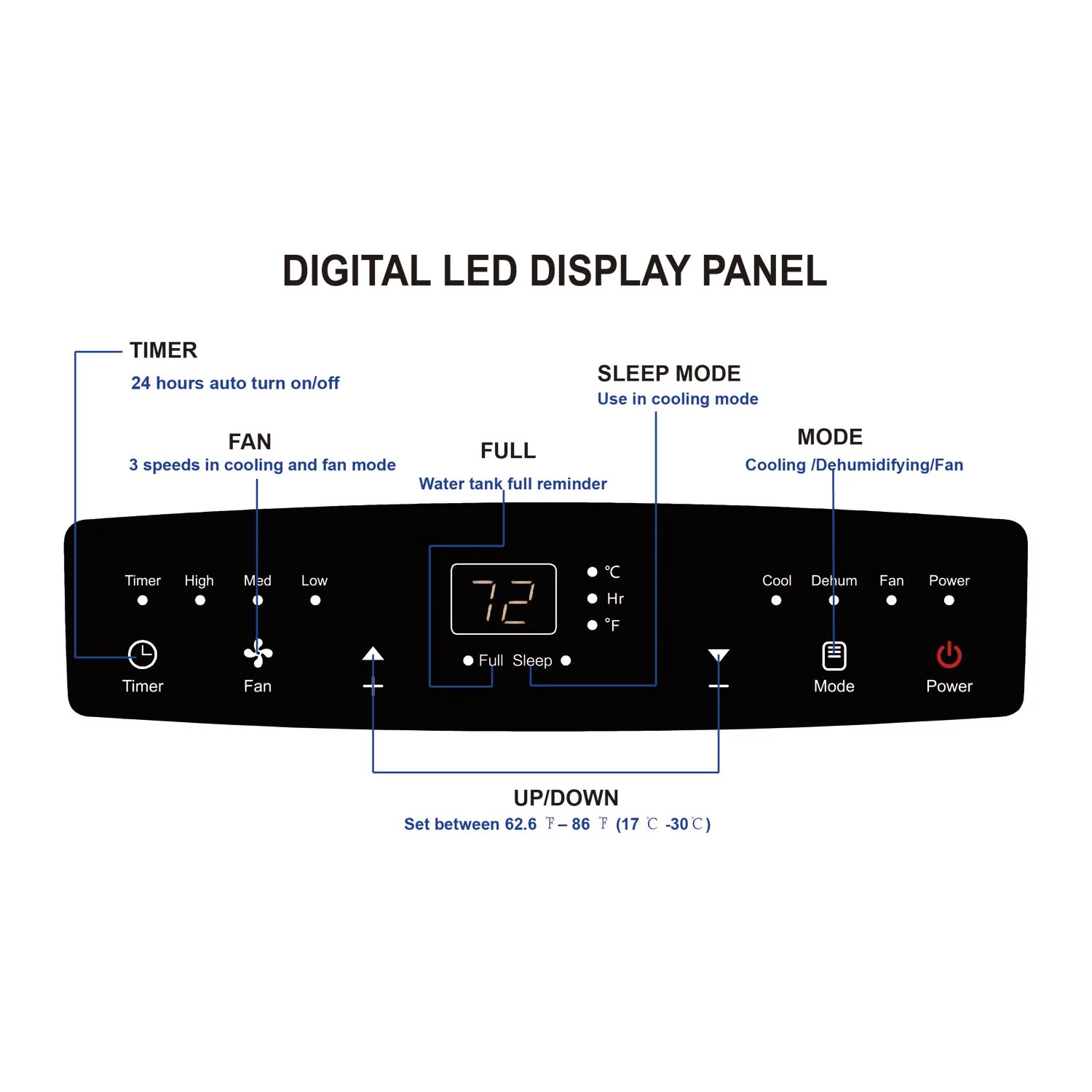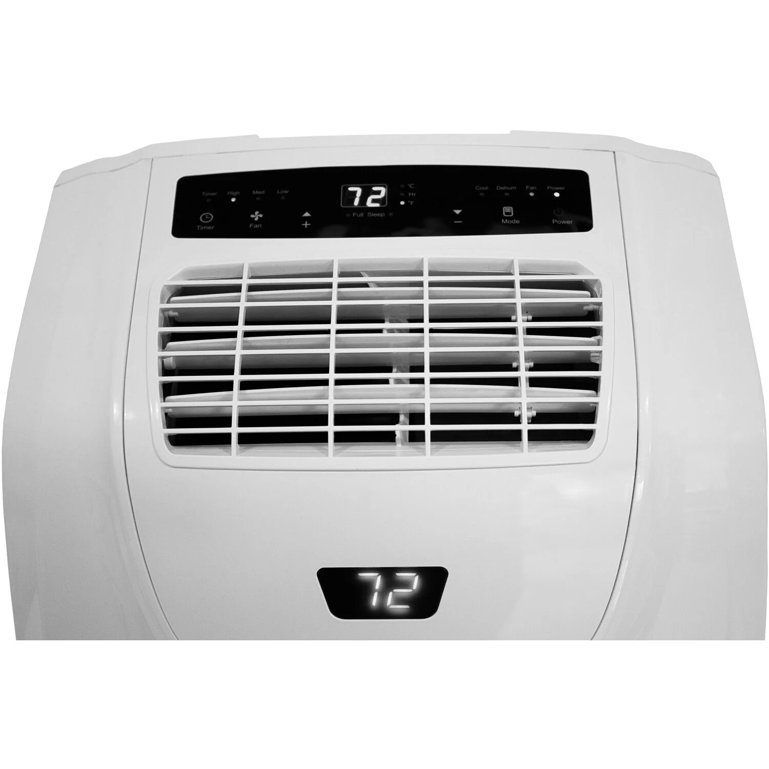 Cooling capacity: 8,000BTU SACC / 14000BTU ASHRAE STANDARD Estimated cooling area: 500 sq.ft max Auto restart after power outage Power supply: 115V/60Hz Rated power consumption: 1350W/11.9A Refrigerant: CFC free R-410A Digital thermostat control range: 62.6 degrees F – 86 degrees F (17 degrees C -30 degrees C) Timer: 24-hour ON/OFF programmable timer Dehumidifying capacity: 78pints/day
